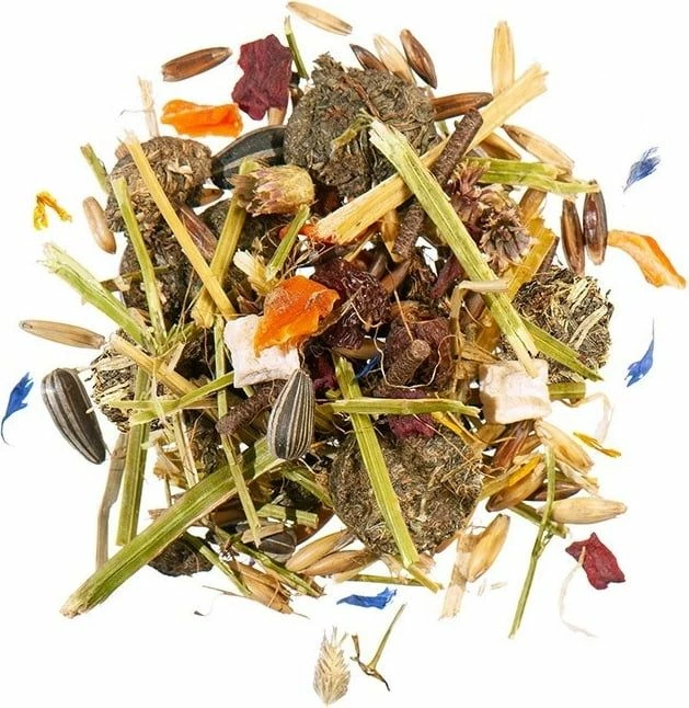 The tasty recipe contains only natural raw materials. The Myo Protein Flakes and alfalfa from Bavarian cultivation serve as protein sources rich in raw fibre. Yellow oats and black oats act as energy suppliers. The unsaturated fatty acids come from sunflower seeds and flax cake. These are also responsible for the contained mucus and fibre. Root vegetables and beetroot not only provide valuable vital substances, but also a good taste.