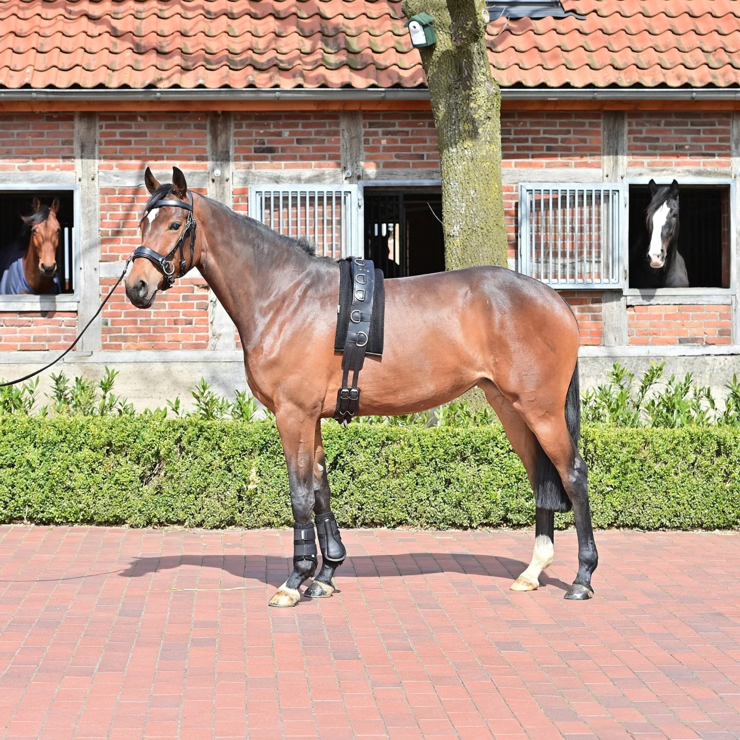 - This lunging pad is made of innovative 3D AIR EFFECT mesh fabric that ensures the best pressure distribution, allows air to easily circulate and is quick-drying. The dimensionally stable fit and non-slip properties provide additional comfort for your horse. The pad is easy to use and does not need to be attached to the lunging straps.