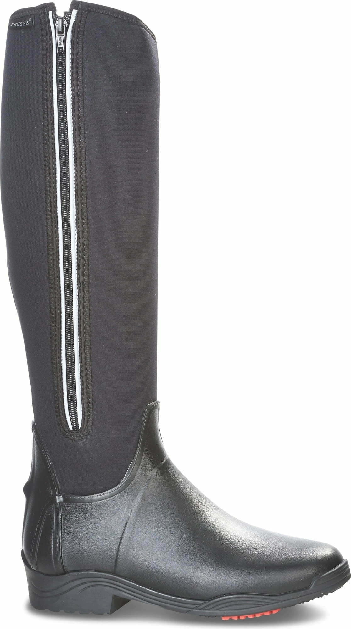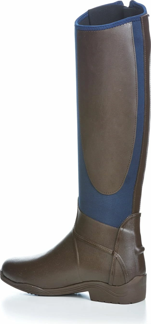 These riding boots – in a sporty two-tone look – are waterproof and are the ideal footwear on cold and wet days. The anatomically shaped boot shaft made of 5mm thick, supple neoprene is a highlight. In addition, there are thin, non-slip surfaces on the inside of the calves for excellent leg contact on the horse.