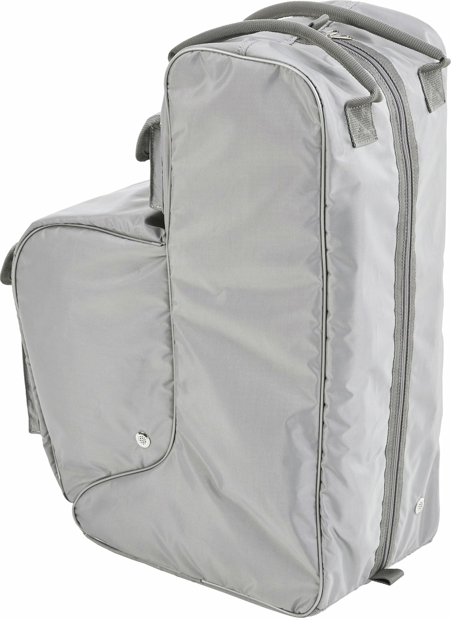 This combination bag allows you to conveniently store your boots, riding helmet and various other small items in one place. Sturdy polyester and padded sides optimally protect your expensive equipment from dust and dirt. Two smaller Velcro pockets offer storage space for small items like shoe polish, spurs or shoe brushes. The bag comes with a reinforced base and PVC feet. Two reinforced handles make the bag easy to transport.