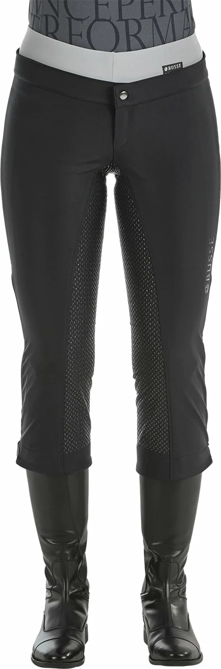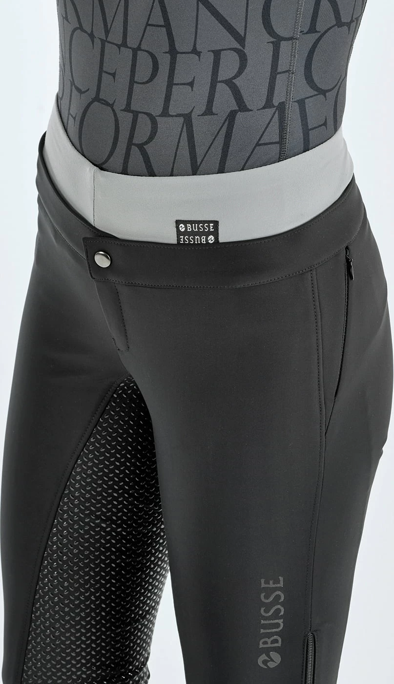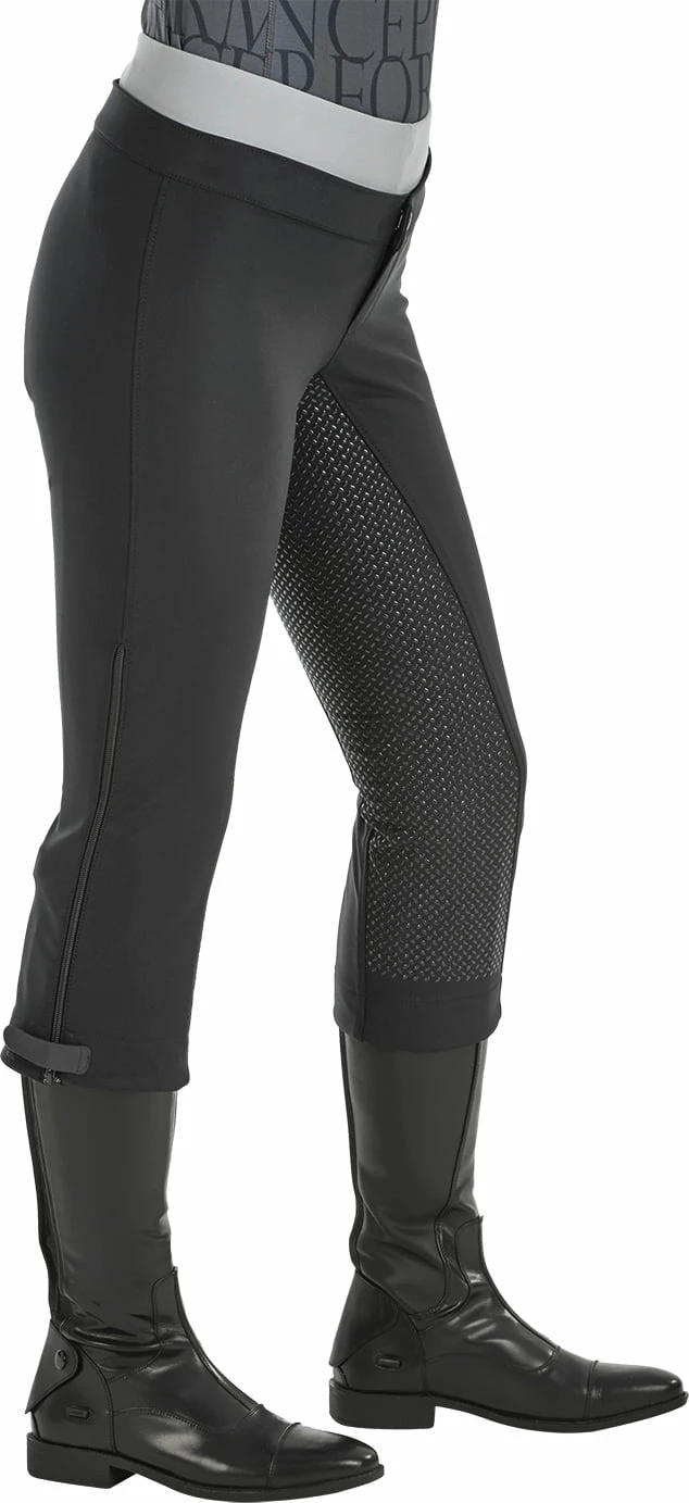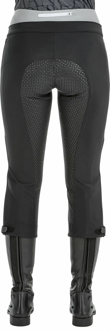 Sporty, functional overs for riding with a non-slip silicone full seat. A comfortable, elastic waistband with belt loops ensures an ideal fit. Water and wind repellent, breathable and moisture-regulating properties thanks to three-layer, elastic softshell material with membrane, cosy, warming inner fleece and waterproof zips. The penetration of water molecules is repelled and, at the same time, the escape of water vapour is made possible. Additional silicone applications on the inner seams guarantee a better hold on the boots. Leg ends with Velcro fasteners and zips for easy on and off.