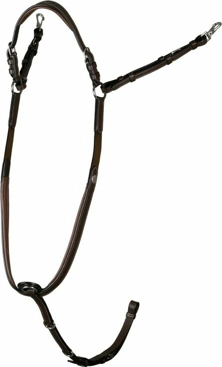 Stylish breastplate with practical div. The included bridge is individually adjustable in size and two D-rings on the chest piece are used to easily attach lunging aids and auxiliary reins. Elastic inserts on both sides, 6cm long, ensure even better wearing comfort. With a carabiner to attach to the saddle.