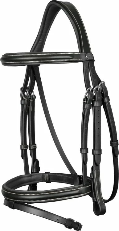Simple snaffle with combined noseband in a classic look. The high-quality buffalo leather is slightly curved at the browband and noseband and has an anatomically shaped headpiece. Surrounded by cream-coloured stitching. Includes a 13 mm wide, detachable locking strap.