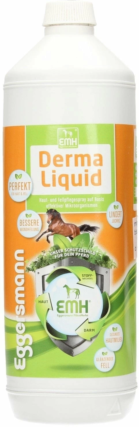 The EMH Derma Liquid can be sprayed onto the coat after brushing it out. The Derma Liquid can also be applied with a sponge. Regular use allows a protective coating to build up, leaving the skin more resistant to external influences. It also leaves the coat nice and glossy.