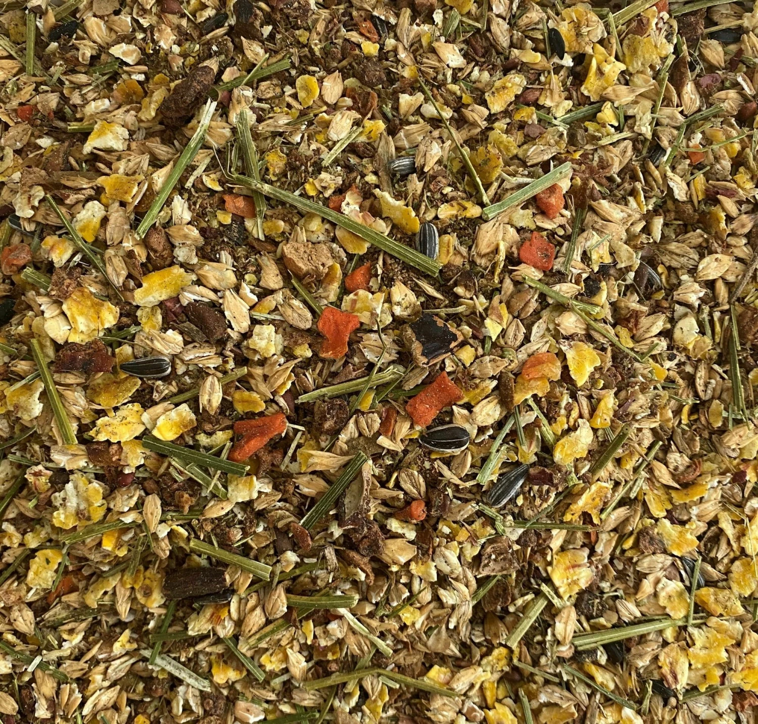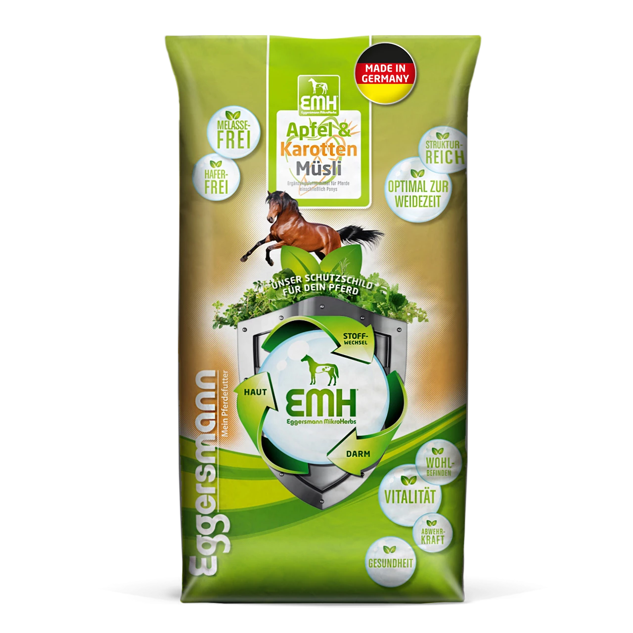 The basis of barley and corn flakes with milk thistle oil is suitable for all those horses and ponies that are exposed to a medium workload. The oat-free muesli can also be used optimally as a tasty addition to extensive paddocks. By means of thermal treatment of the grain and high structural content, the horse’s chewing behaviour and salivation of the feed are improved, which can optimally support gentle digestion.
