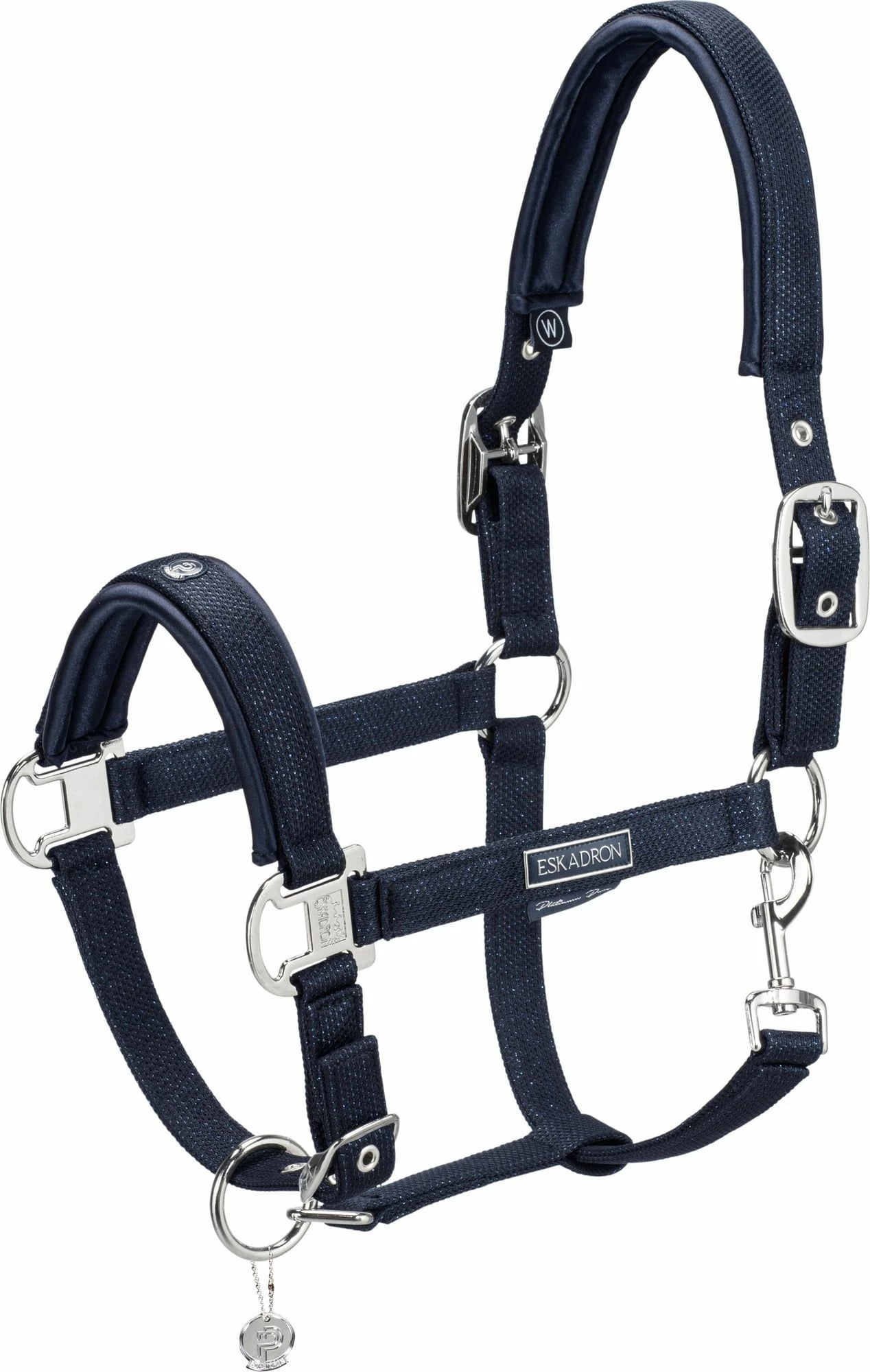 - A classic halter with a touch of glamour. The eye-catching glitter mesh decorates the entire halter, which incorporates logos on the noseband and headpiece, as well as on the cheekpieces. Shiny silver fittings complete the look.