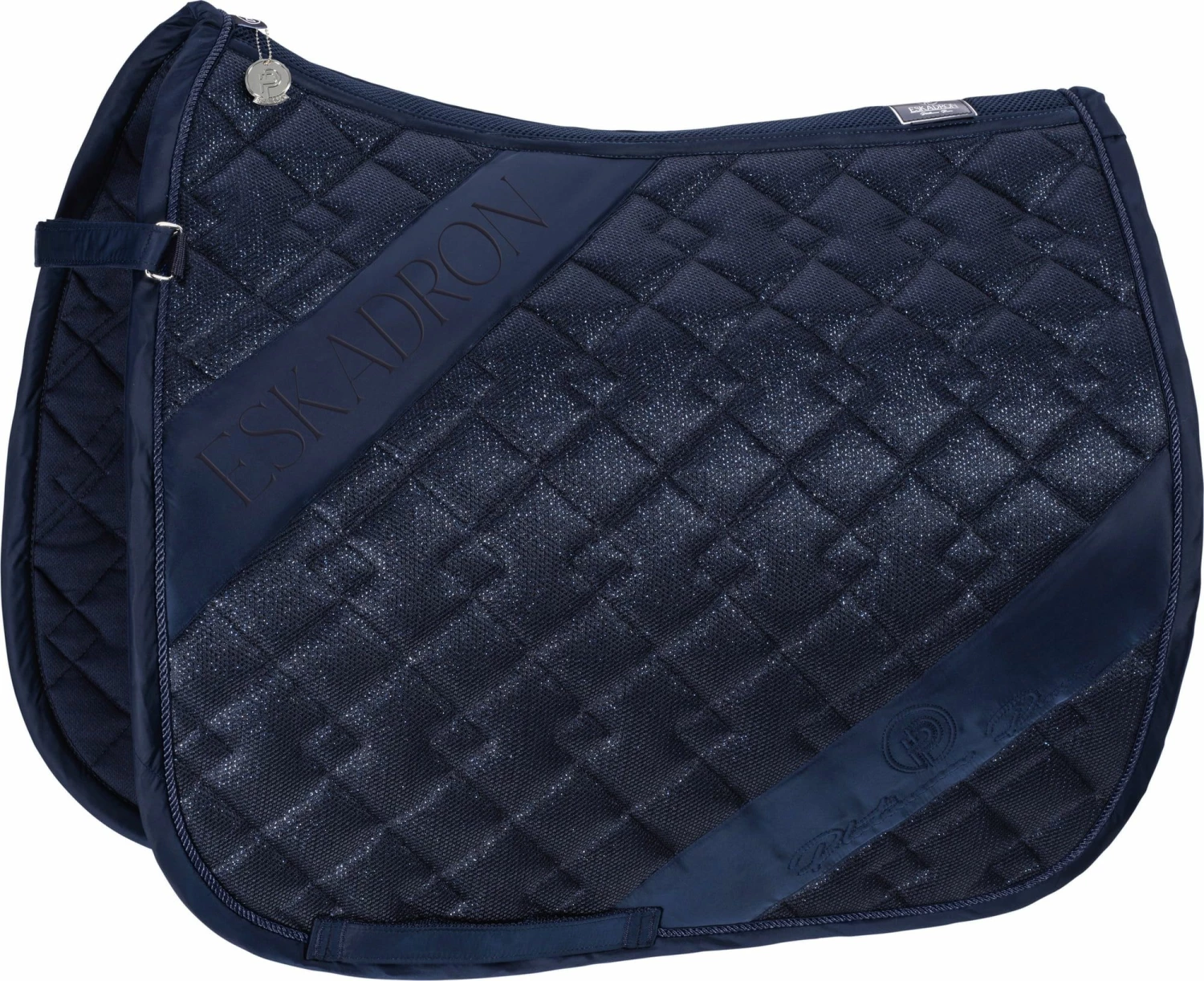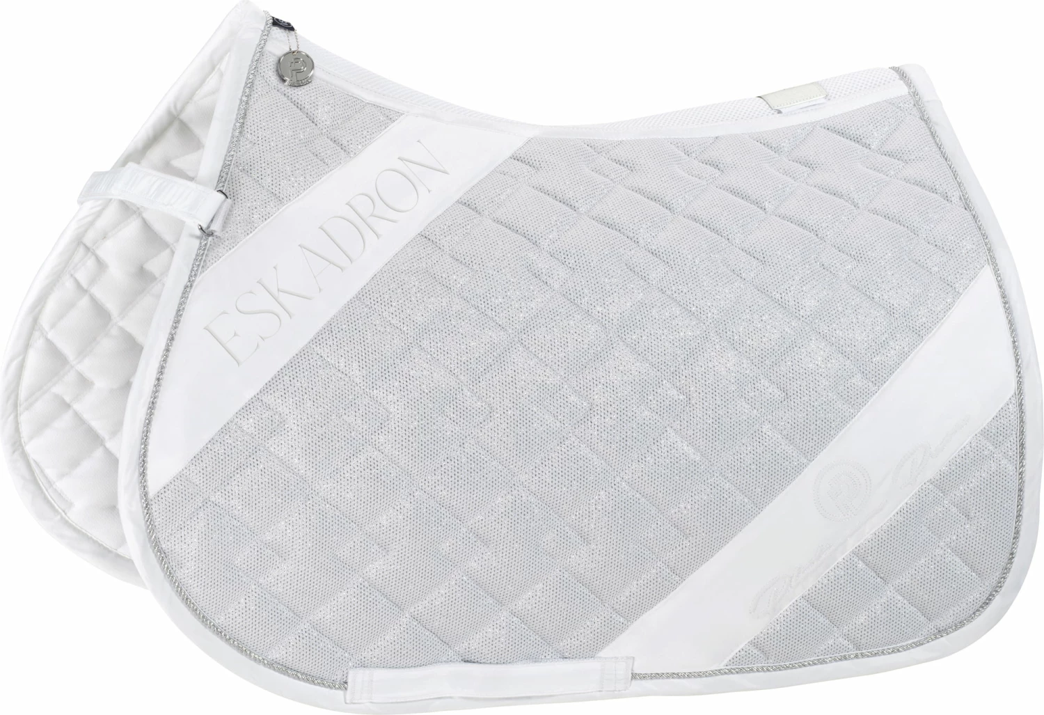 - This saddle pad offers the ultimate in glitter and glamour. The design features a two-layer glitter mesh combined with wide glossy stripes on both sides, making it the perfect addition to any saddle. Further design div are an elegant Lurex cord, glossy edging, and Platinum Pure lettering on both sides.