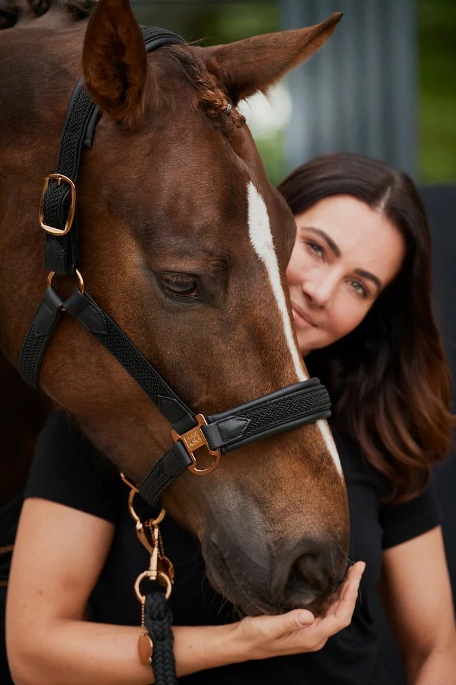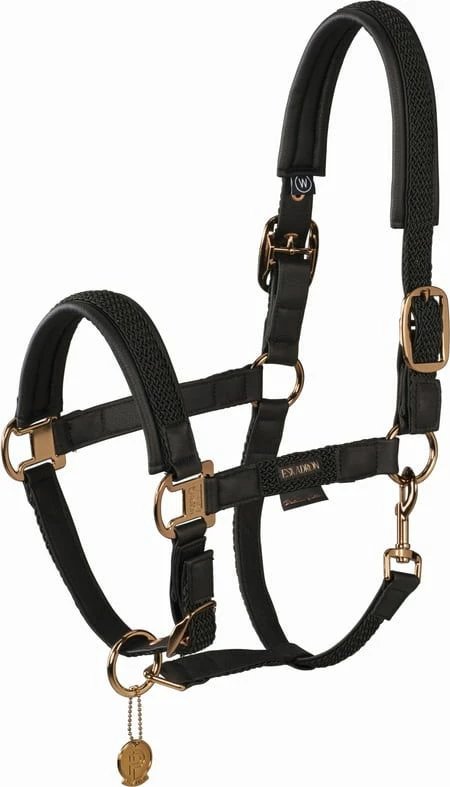 - This high-quality halter comes in stylish black with shiny copper-coloured fastenings. Soft padding ensures that your horse stays comfortable.
