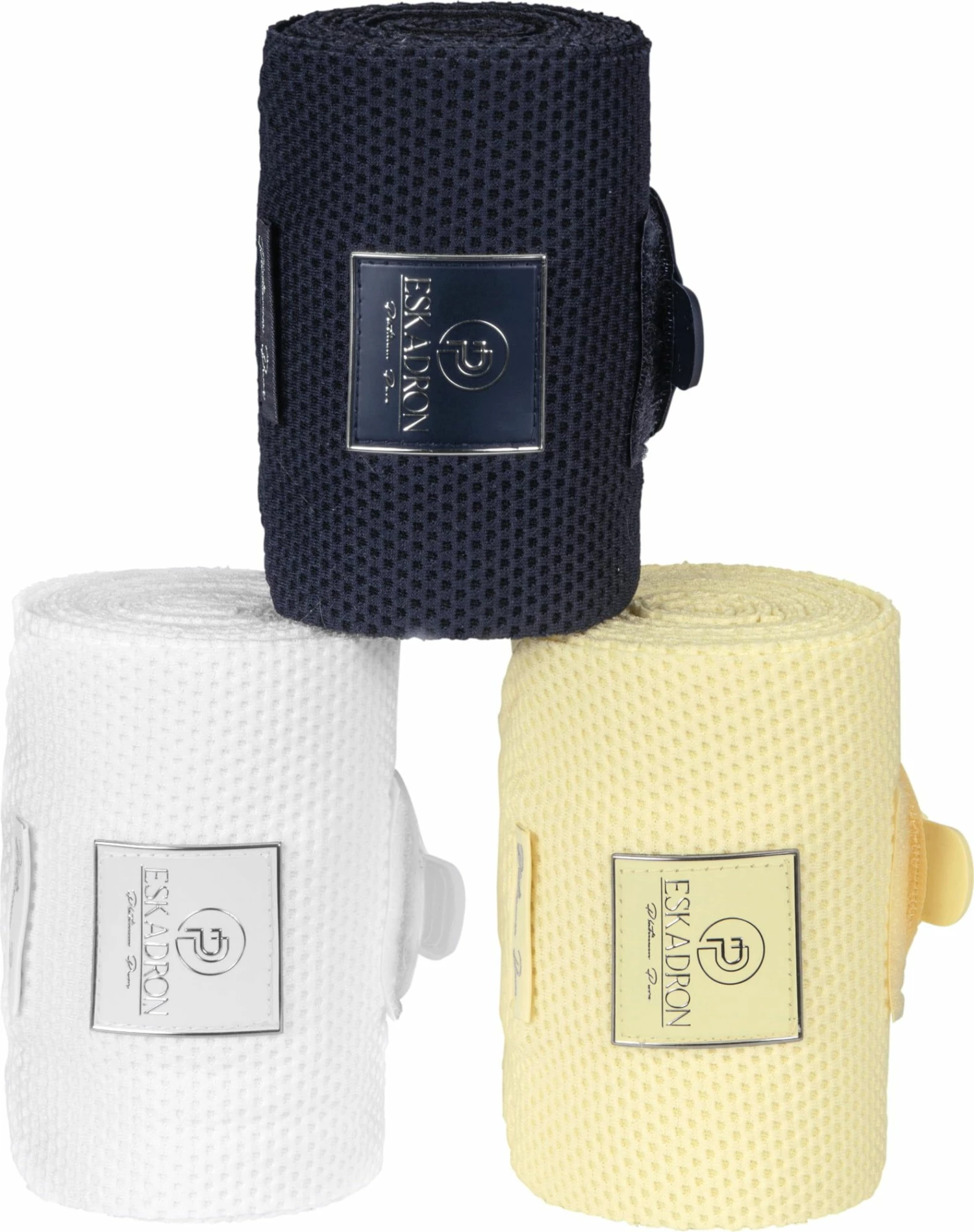 These highly functional bandages feature mesh fabric, making them particularly breathable and effective at distributing pressure. The end of the bandages also incorporates a collection logo.