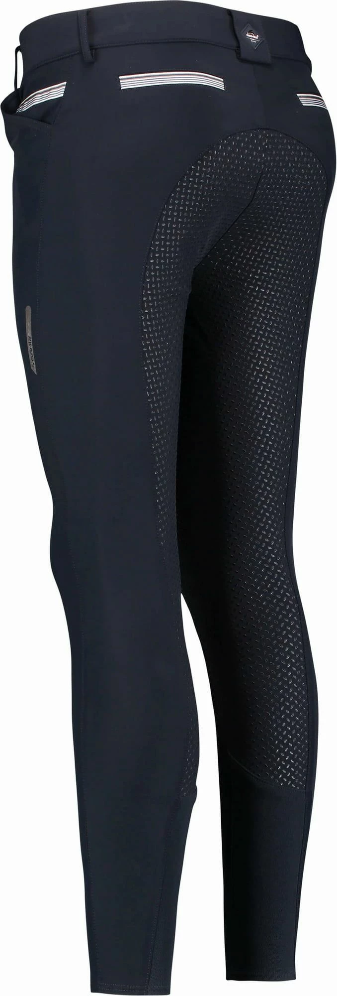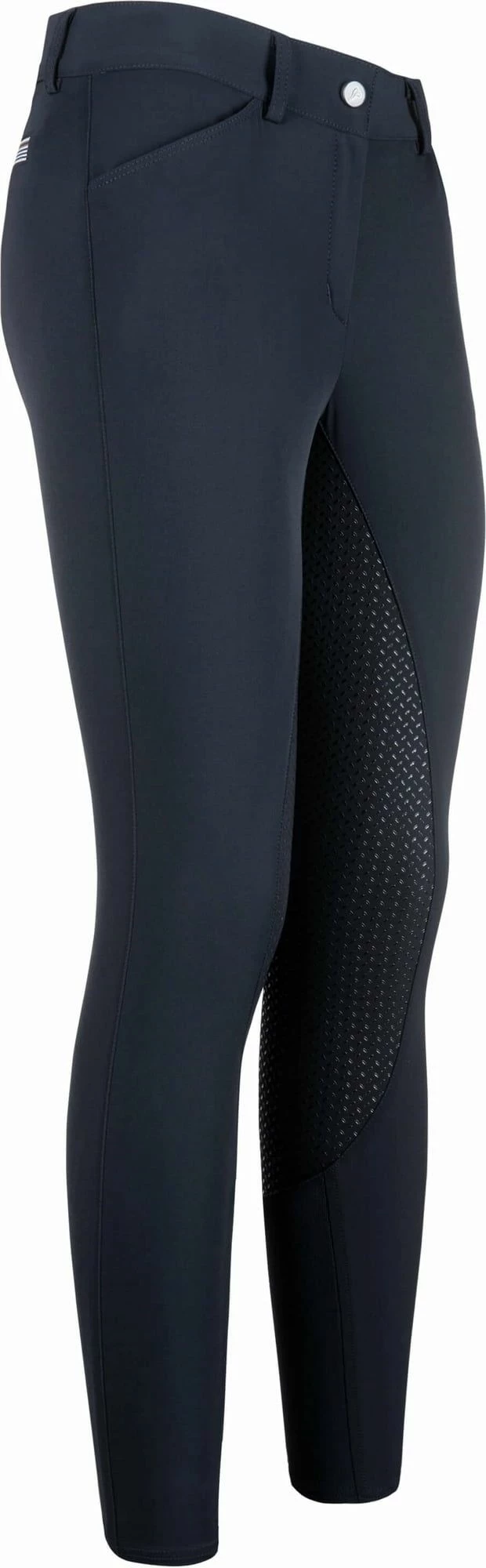 The innovative ESArista FullGrip® silicone jodhpurs are made of light, elastic nylon and provide extra good grip in the saddle. The elastic Flex® leg cuffs and the low waist height make it extremely comfortable to wear. The jodhpurs have a normal fit and have angled pockets on the left and right front. The two polyamide pelvic pockets on the seat are stocky with stylish, subtle stripe div. The euro-star logos are discreetly embossed on the trouser button and as a patch on the middle belt loop at the back. A small logo print is attached to the left thigh.