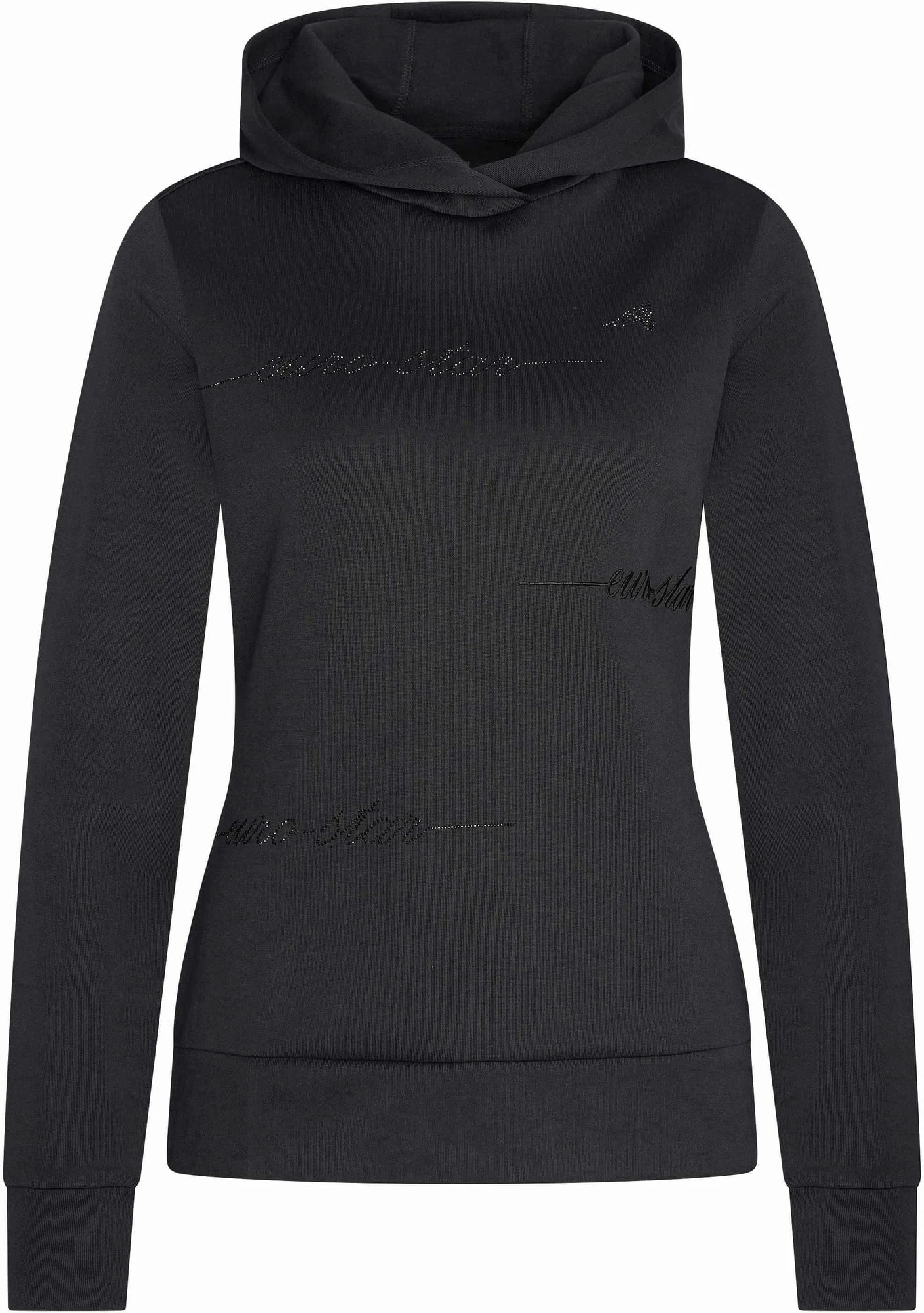 A simple hoodie with a tailored cut and beautiful rhinestone and embroidery div on the front. A cosy hood with a gathered neckline creates the perfect casual look.