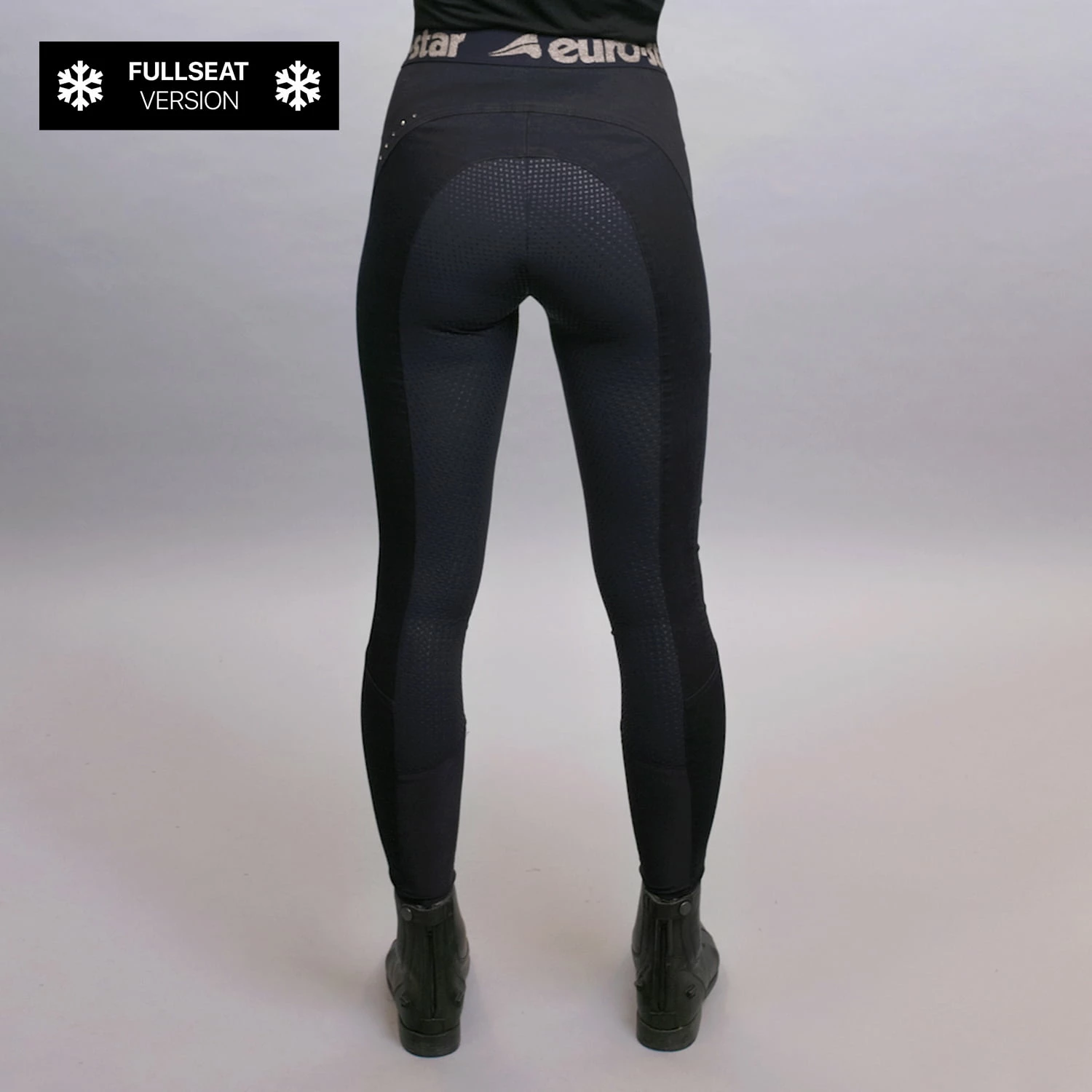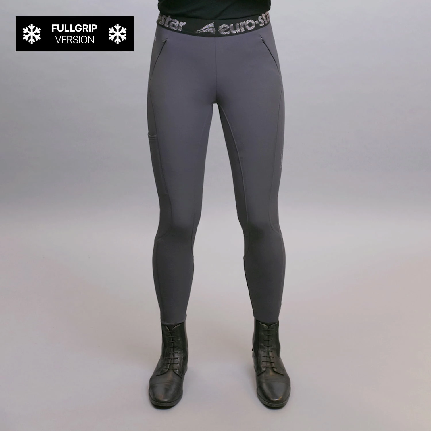 The softshell version of the Athletic model is a real all-rounder for winter. Whether for riding, running, cycling or as a companion in the fitness studio – these jodhpurs are versatile. A warm fleece inside also protects against cold winter days. The attractive flexible elastic waistband with euro-star lettering is also sewn onto the leg end as a partial insert. The mobile phone pocket is secured with a zip in the front leg area. The full-grip variant with silicone full seat also has a flex leg end.