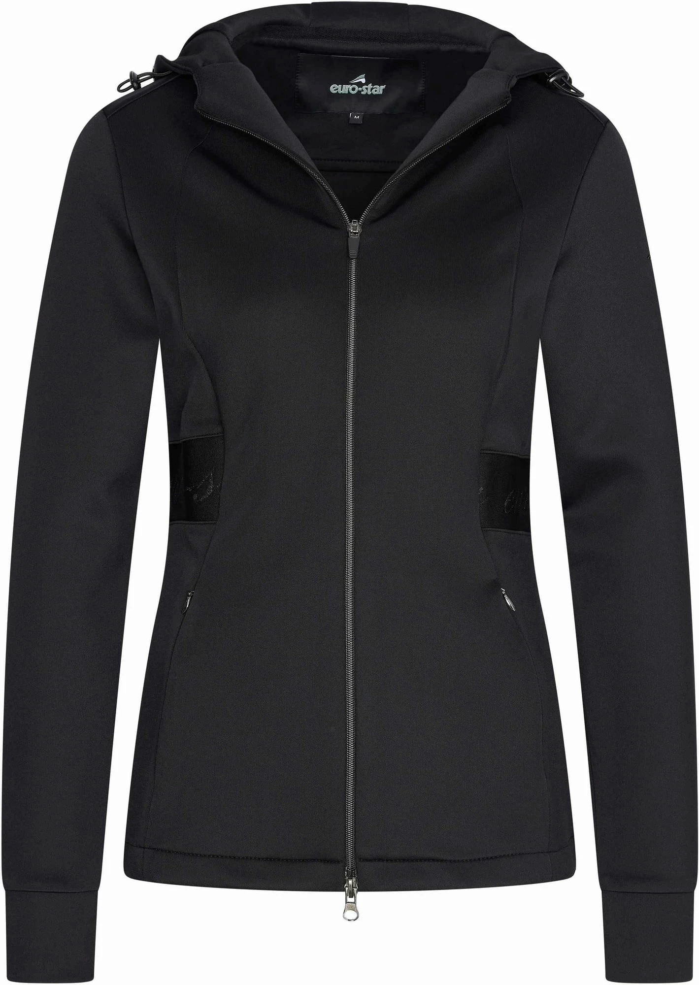 - And of course, practicality hasn’t been forgotten. The spacious hood with a drawstring can be attached to the back with a press stud, keeping it in place while riding.