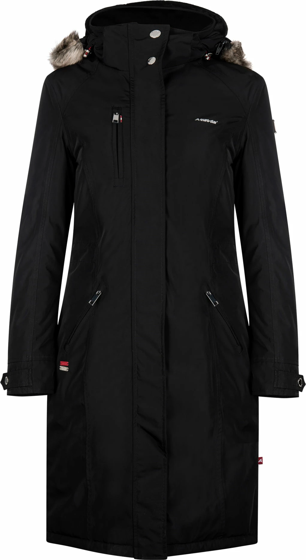 - The jacket features a classic euro-star logo on the left side of the chest.