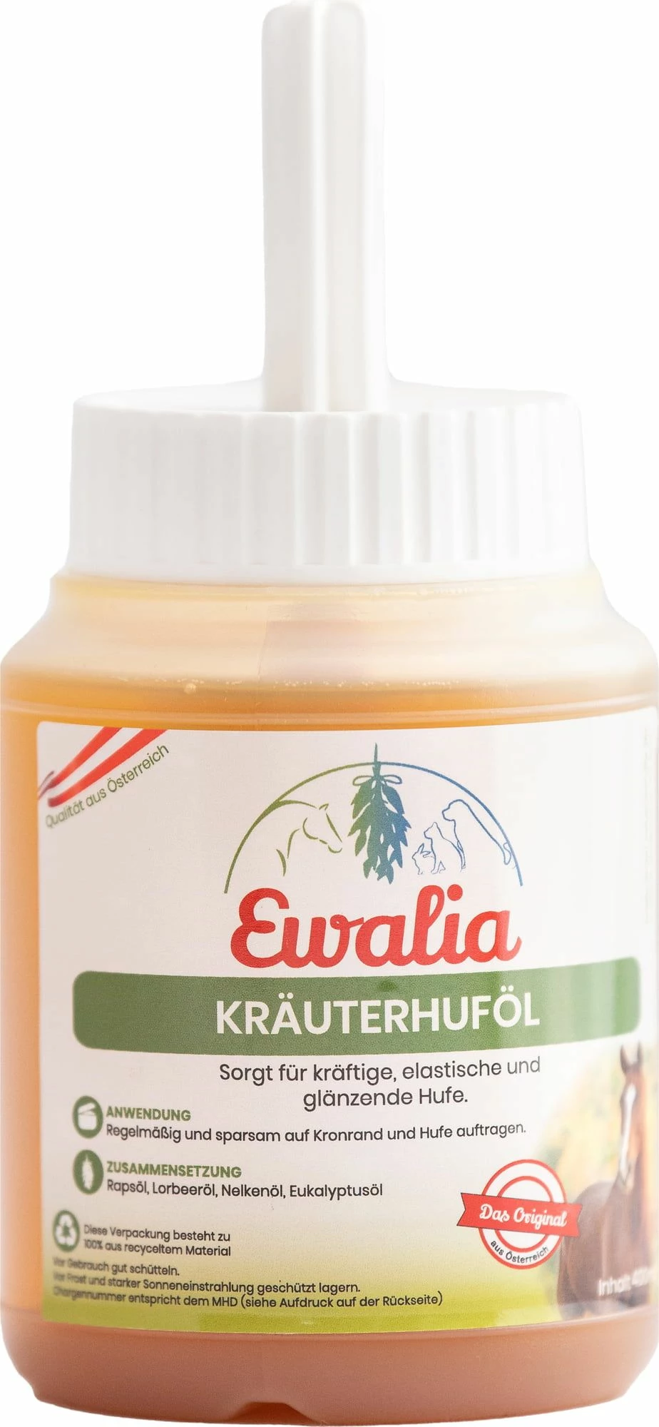 This herbal hoof oil by EWALIA ensures strong, supple and shiny hooves. It should be applied regularly and sparingly to the coronary band and the hooves.