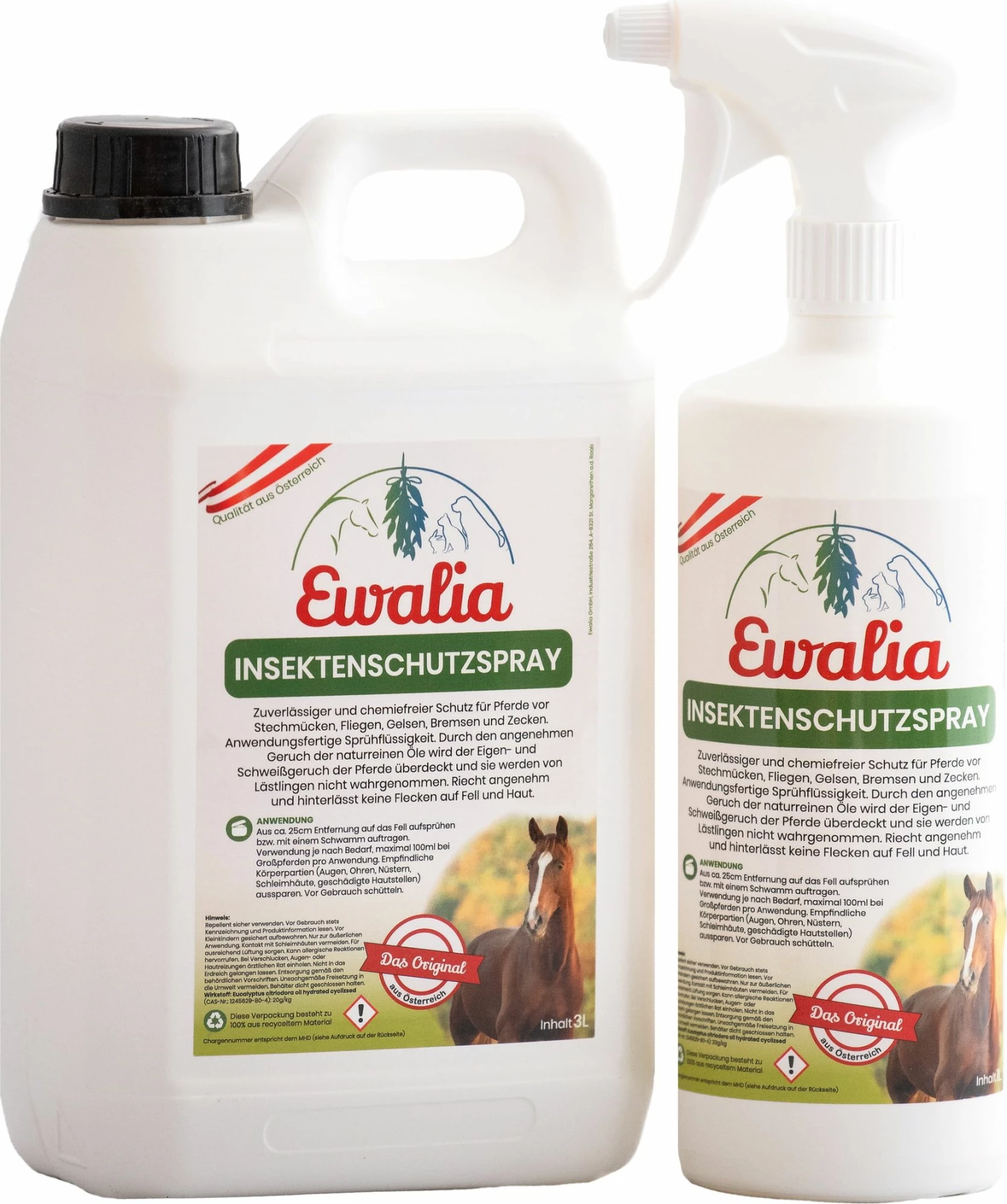 The EWALIA insect repellent spray offers reliable and chemical-free protection for horses. It repels flies, mosquitoes, horseflies and ticks. It can be applied as needed.