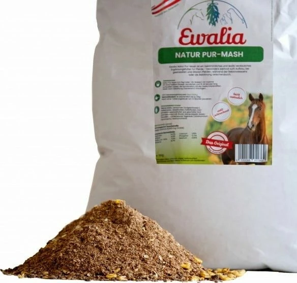 Mix Ewalia Naturpur-Mash 1: 1.5 (1kg feed: 1.5L water) with a maximum of 50 degrees hot water and let it swell for 15-20 minutes. When combined with the Ewalia herbal juices, add these after cooling down (lukewarm).