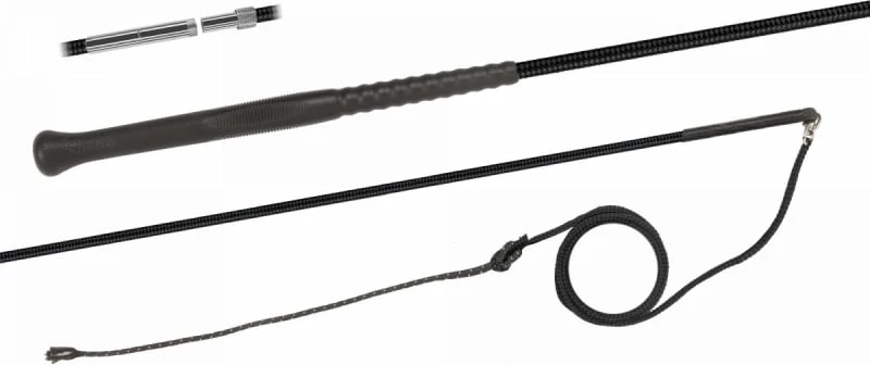 Thanks to the screwable connection, this whip can easily be taken apart and stored on your way to an event. The coarse beaded whip is equipped with an ERGO handle and a nylon lash.