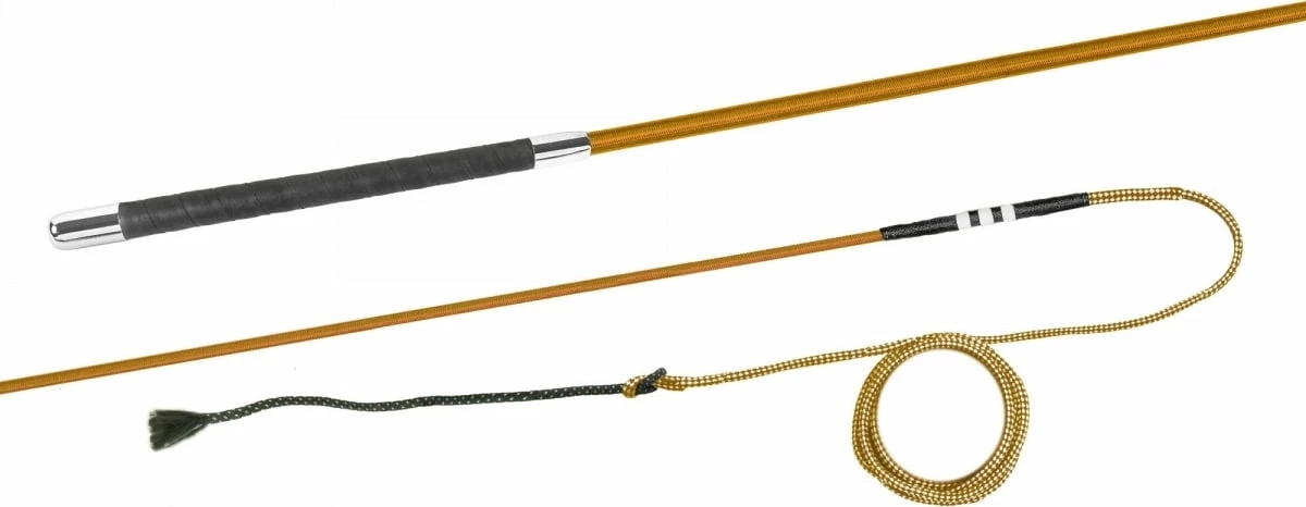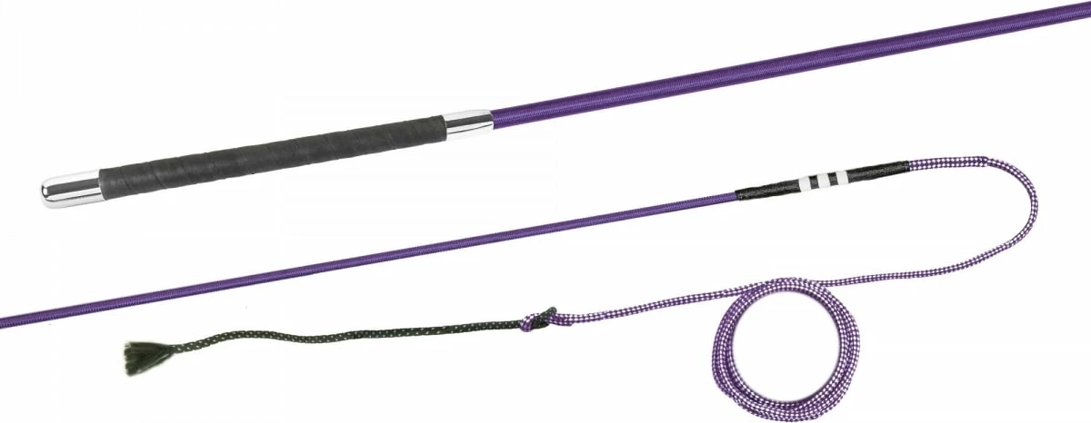 This lunge whip is made of finely spun nylon including a continuously spun nylon lash. The long, slim wrap-around handle offers the best grip and lies stably in the palm of the hand. Ideal for any hand size.