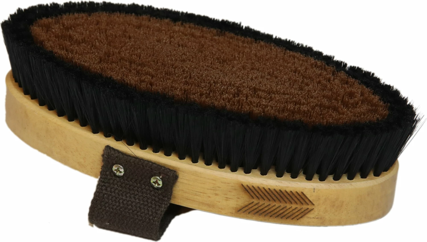 With its short, hard nylon bristles, this brush is ideal for the cold season and for horses with thick fur. It ensures a distribution of the natural oil in the horse’s fur, leaving it particularly shiny. The smoother bristles in the middle intensify the caring effect. The cotton handle offers a secure hold and makes this brush a uniquely useful accessory.