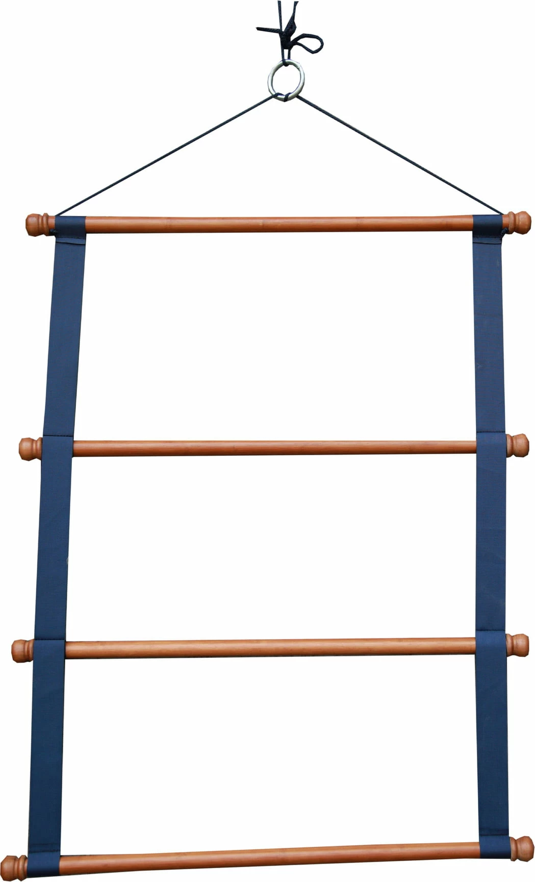 This practical saddle cloth holder should not be missing in any tack room or at any show. Wide side straps, poles made of robust bamboo wood and a strong hanging cord stand for high quality and resilience. Up to four saddle pads can be dried and stored at the same time. An additional loop on the cord makes it easy to attach to different places.
