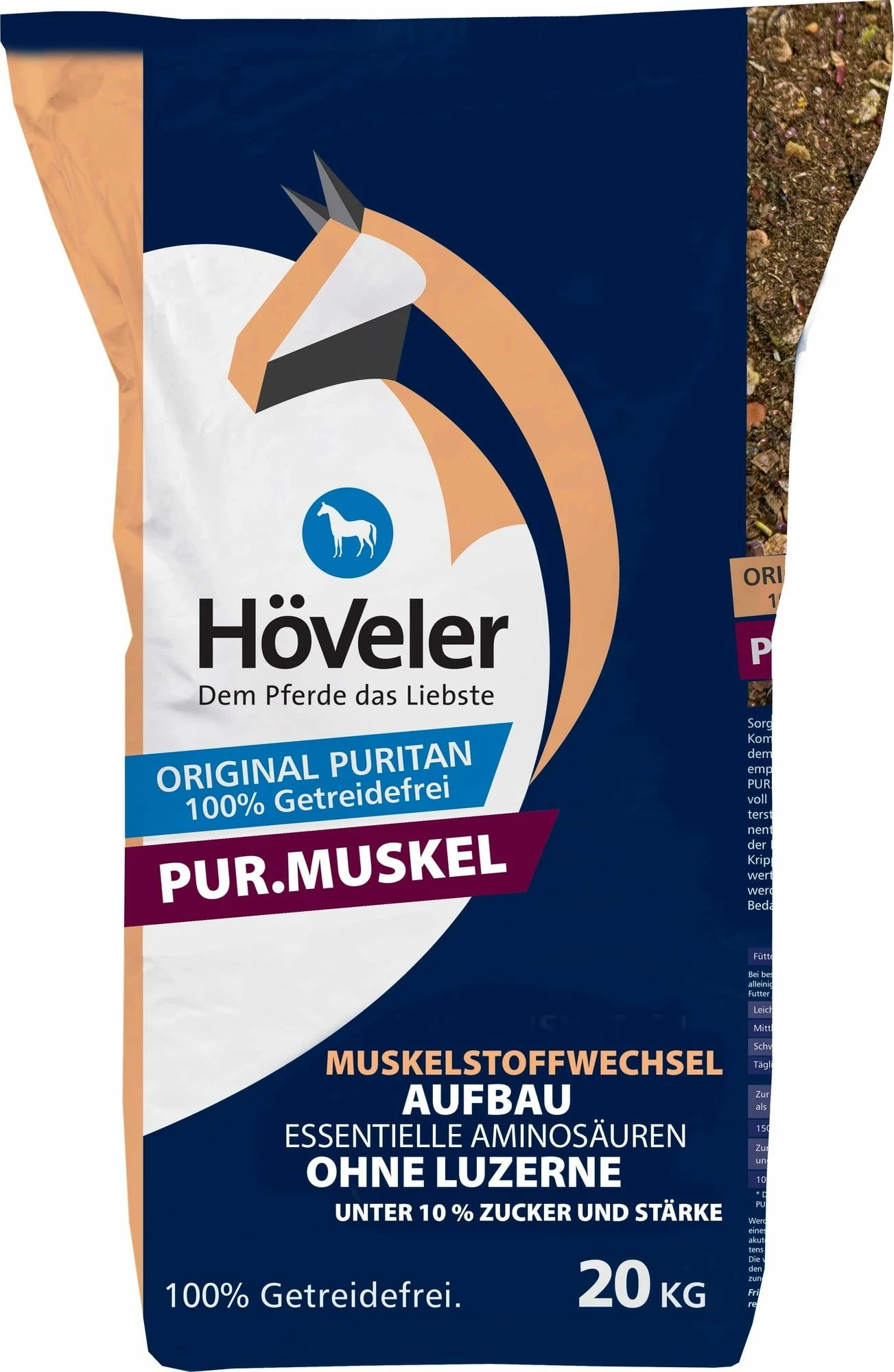 Pur.Muskel contains a specific composition that specifically supports muscle metabolism. The protein and energy-rich muesli does not contain any alfalfa and is designed without additional vitamins and minerals. This simplifies adding the müsli to your horse’s feed program.