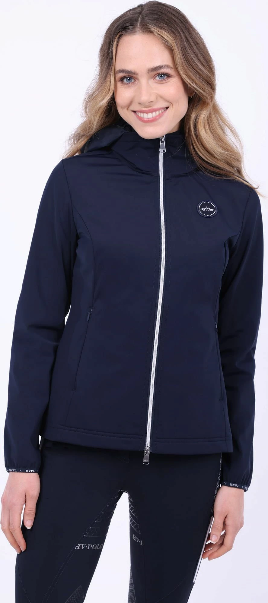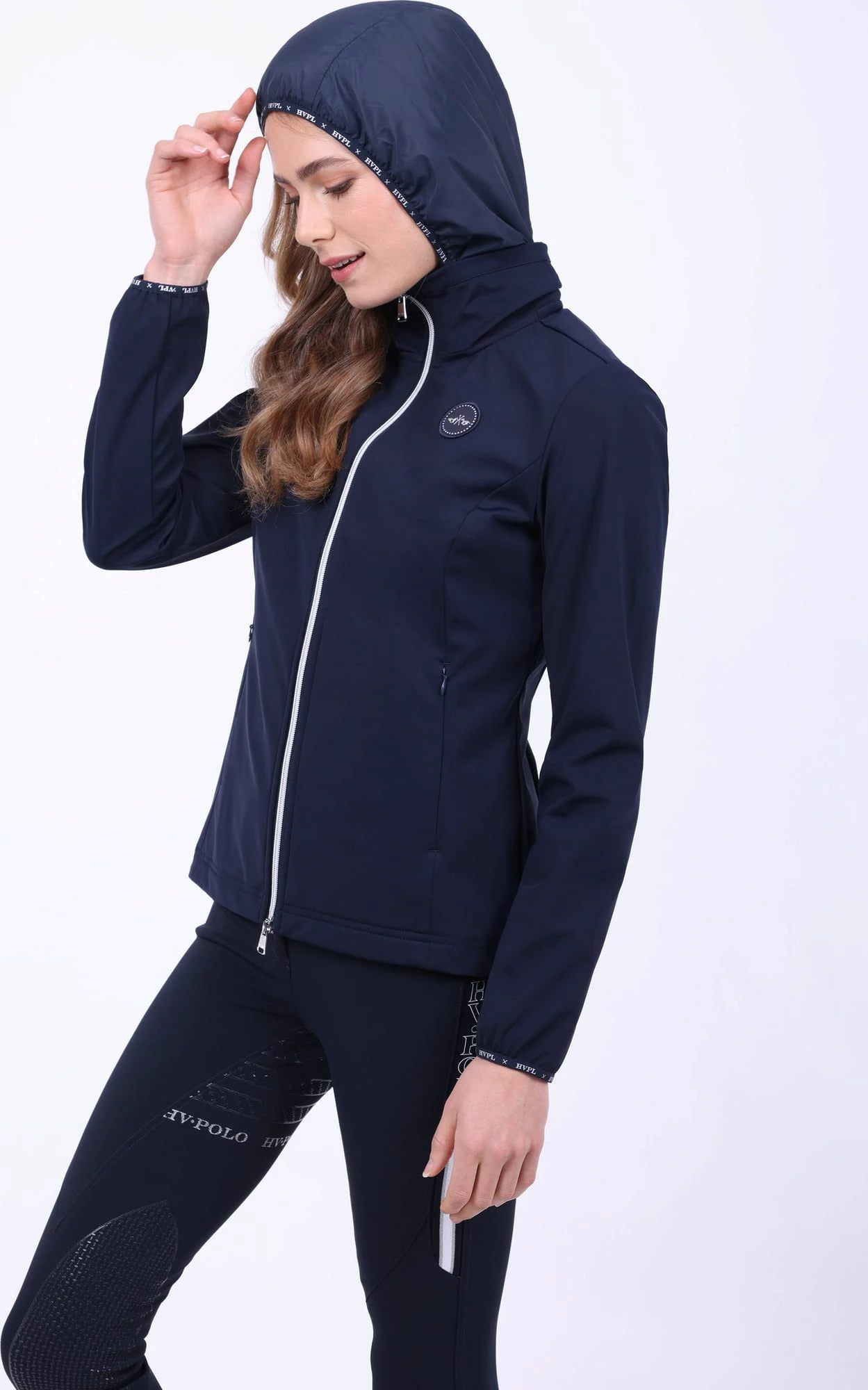This extremely comfortable tech shell jacket accentuates a slim waist. Its practical highlights include a detachable hood and a 2-way zip, lined with velvet.