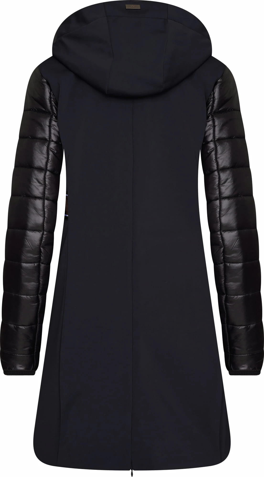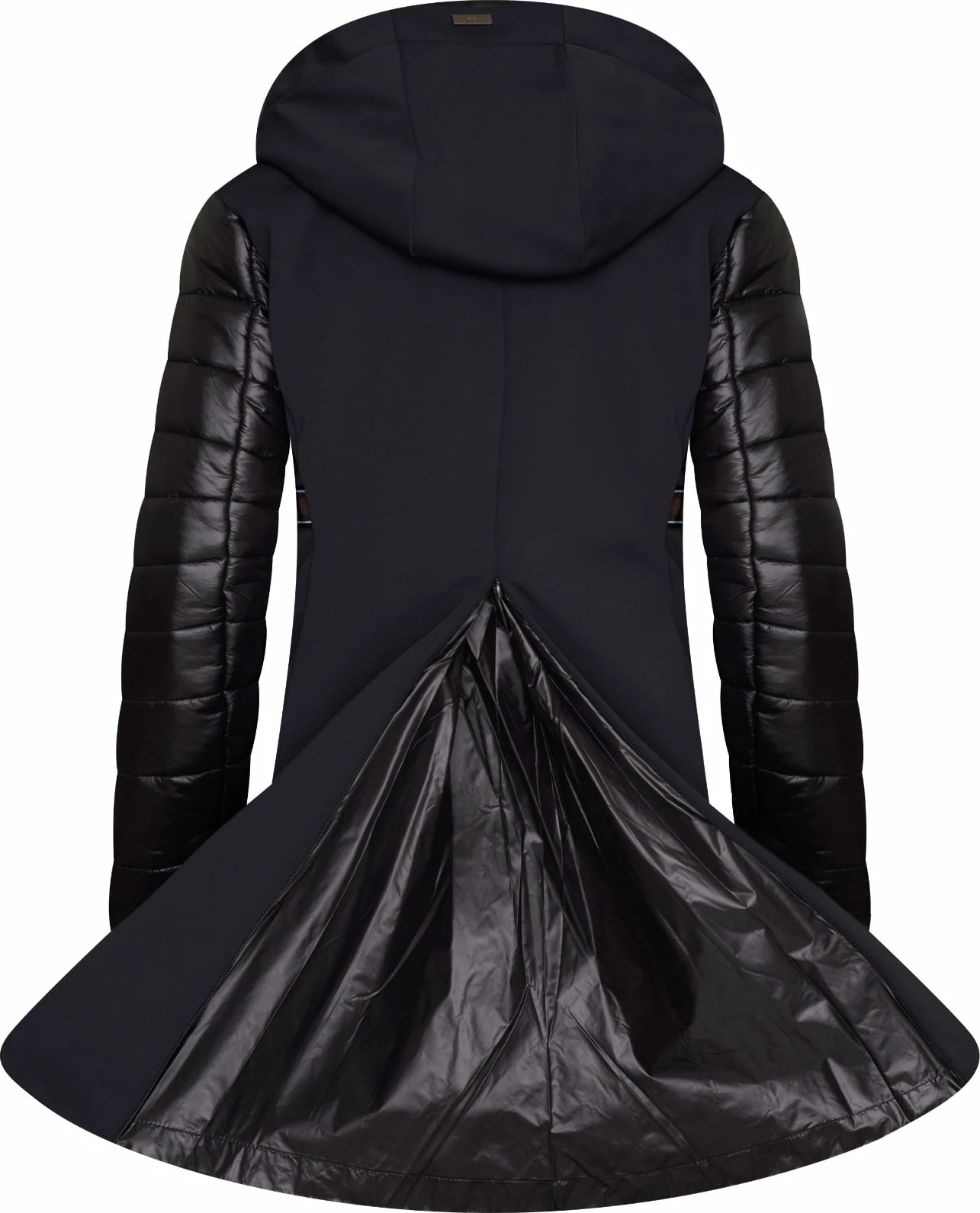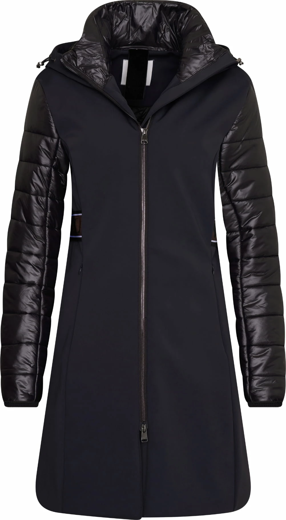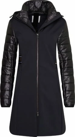 This luxurious softshell coat is made with shiny quilting on the sleeves and collar. Elastic bands at the waist create a beautiful silhouette.