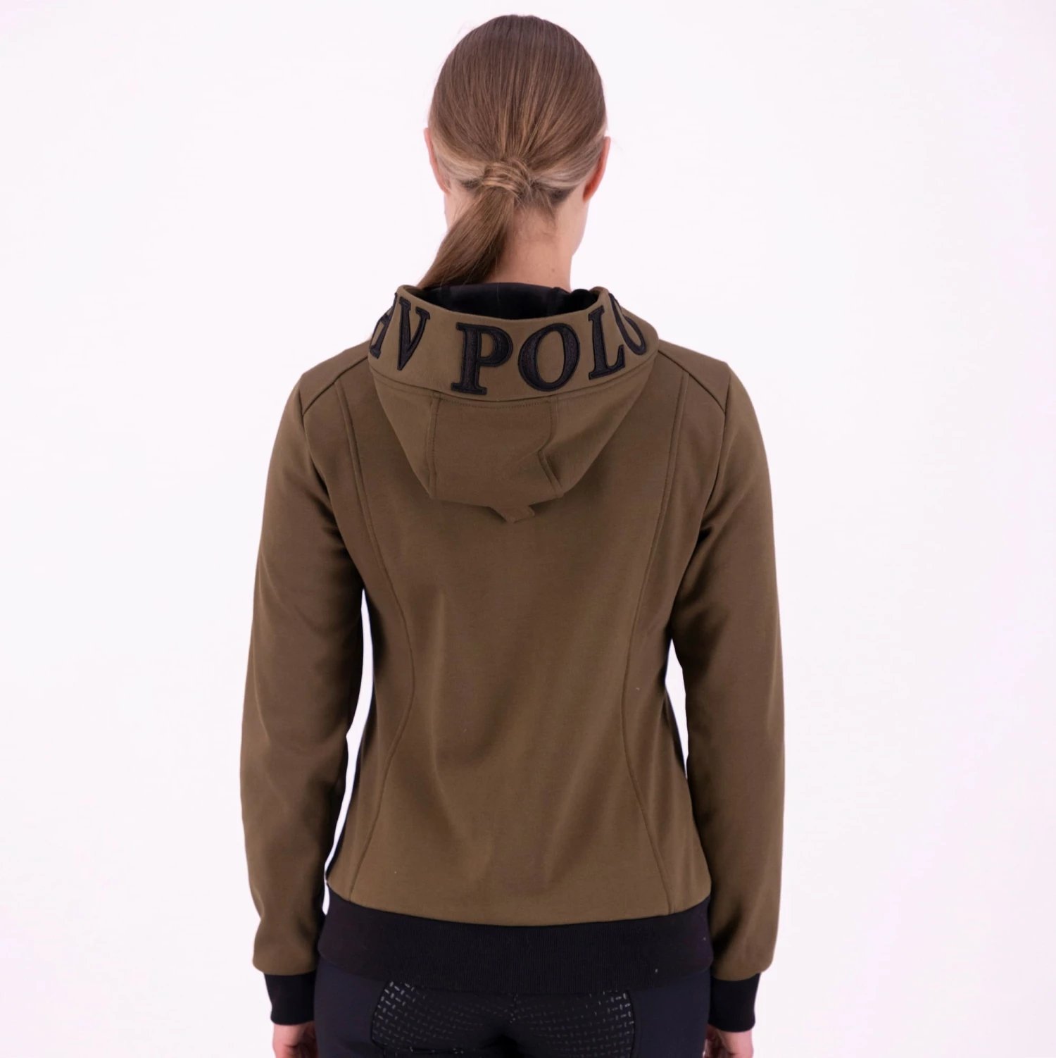 This classic zip-up hoodie has high-quality cotton fabric on the outside and a cosy velvet lining. It is perfect for cold days at the stable and incorporates a practical 2-way zip so you can stay cosy and warm on horseback too. It features a HV Polo rhinestone logo on the left-hand side of the chest and a large embroidered logo on the cuff of the hood. The hoodie has ribbed cuffs and hem, a fastening tab for the hood, and side pockets.
