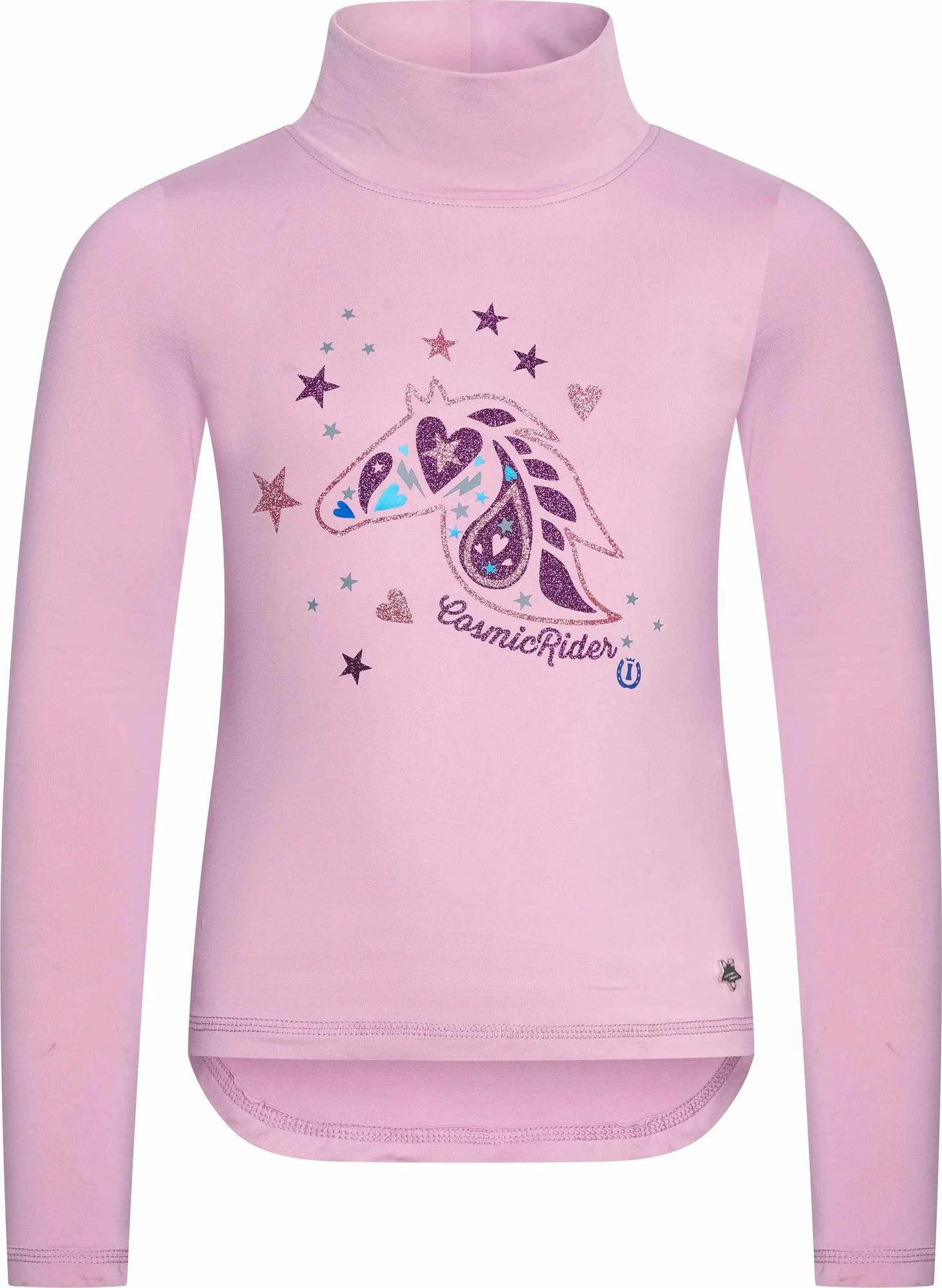 The fabric dries quickly and is moisture-regulating, making it perfect for strenuous training sessions on cold winter days. A trendy, glittery horse print adorns the front of the shirt.