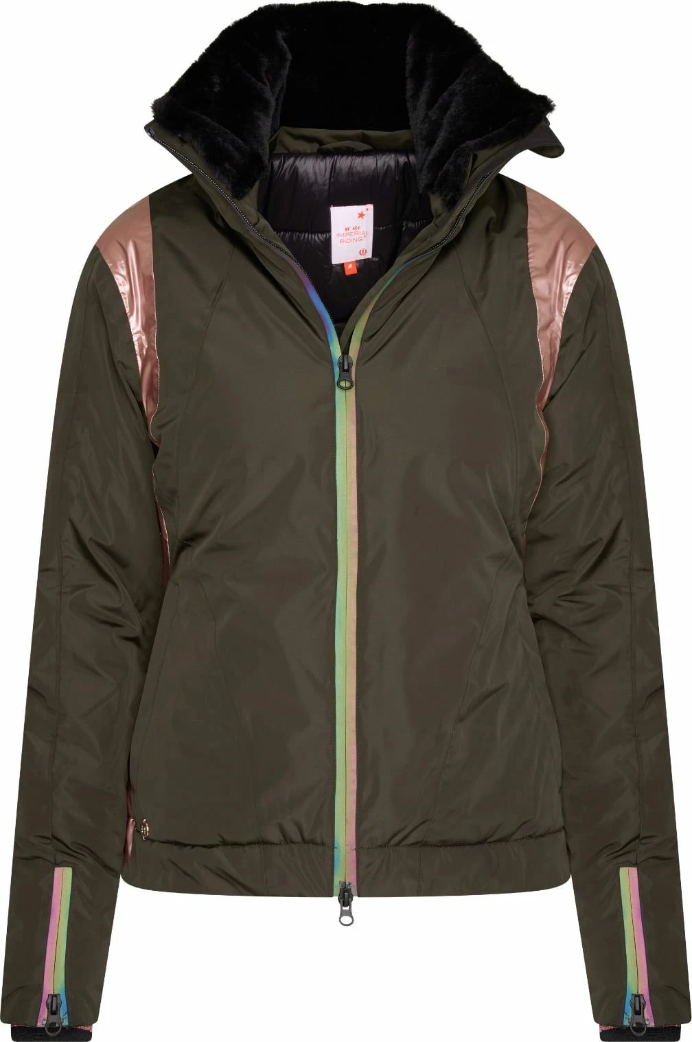 Interesting design meets functionality. The winter jacket is waterproof and windproof and its matt-glossy surface also has a reflective coating. Striking borders in rainbow colours adorn the practical zips on the sleeves and the 2-way zip in the centre of the jacket. The cosy faux fur collar can be attached and removed individually. With cuffs and a chic Imperial Riding patch on the left sleeve.