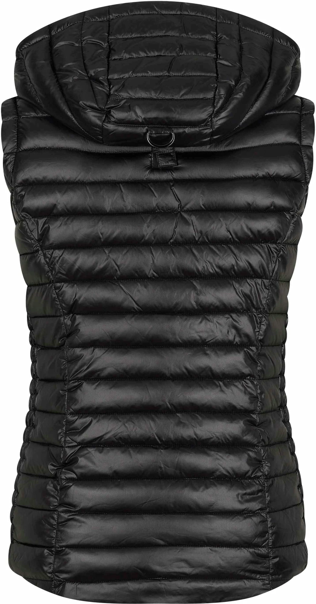 This slightly shiny quilted waistcoat keeps its shape well and incorporates a spacious hood that can be extended using integrated zips. Inside, a padded collar keeps the neck area warm on cold days.