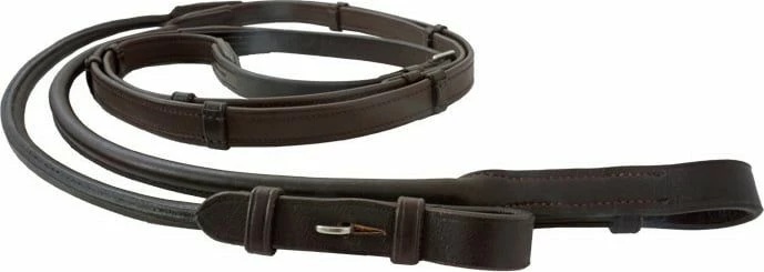 Round stitched reins made of German quality leather. Narrow 16mm version with five bars and fittings in silver. Size: W (1.40m).