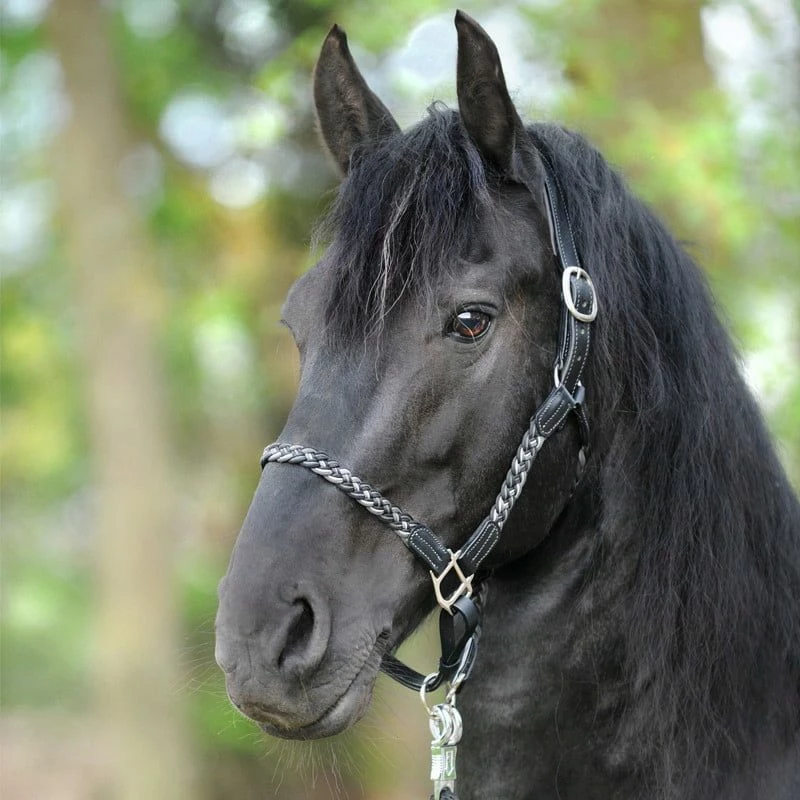 Exceptionally playful and yet chic. Its combination of braided ropes, leather elements and silver fittings look elegant and yet exciting. In order to keep the softly lined headpiece in the middle, the halter is adjustable on both sides of the head. With lobster clasp.