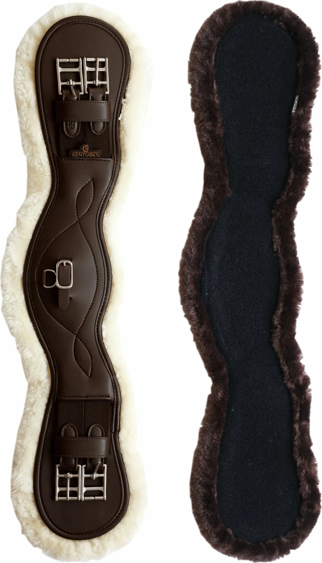 The short girth comes with two different synthetic sheepskin pads. The pads can be attached to the belt with velcro and are therefore easy to change out. The girth itself is made of artificial leather. Since the synthetic leather does not absorb dirt or sweat, it is particularly easy to care for and durable.