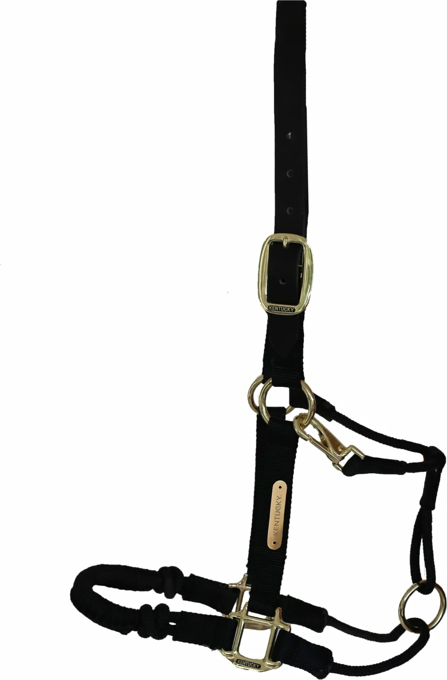 The thick, sharper noseband on this halter assists in controlling strong horses. The halter is a horse-friendly alternative to chains and can also be used for lunging. The attached plaque can be engraved with your horse’s name.