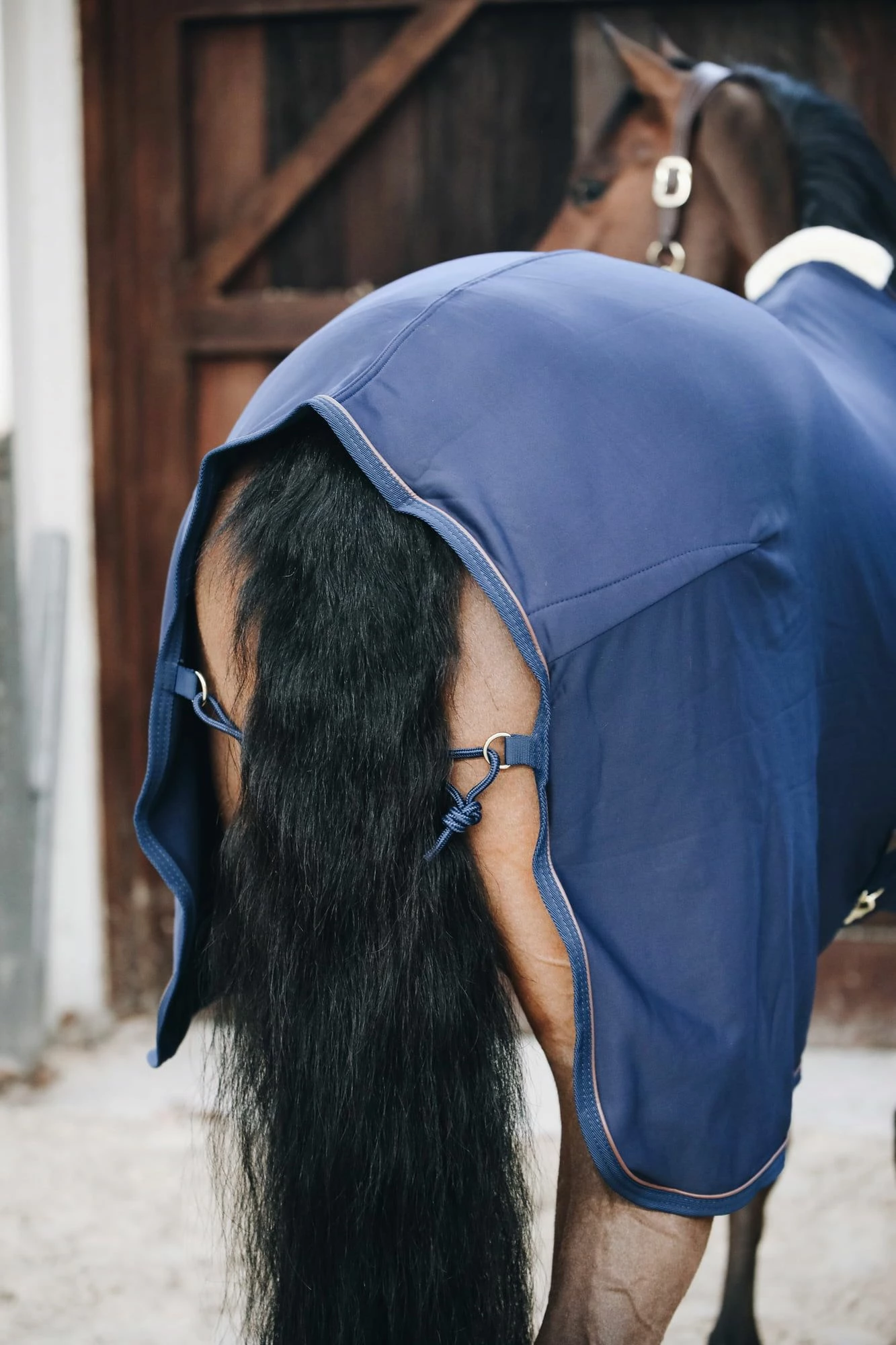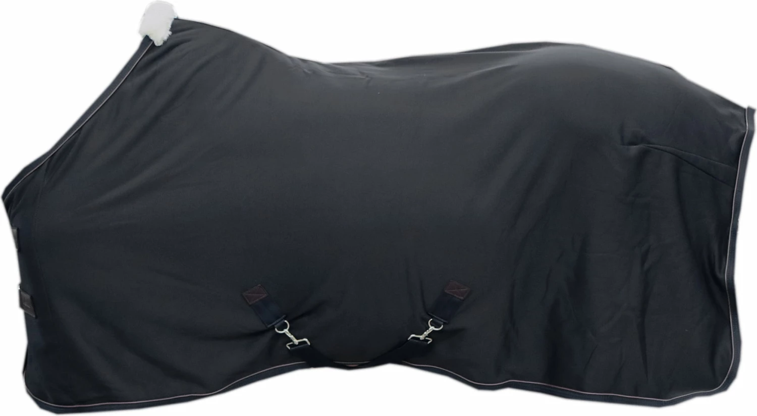 This classic fleece rug is ideal for use after a sweaty workout or a long shower. The quick dry material absorbs sweat and dampness, wicking moisture away from the body to prevent chafing. The rug features two surcingles around the belly that are removable, and two closures at the chest and a tail cord. A soft pad made of artificial sheepskin protects the withers, making the rug very comfortable to wear.
