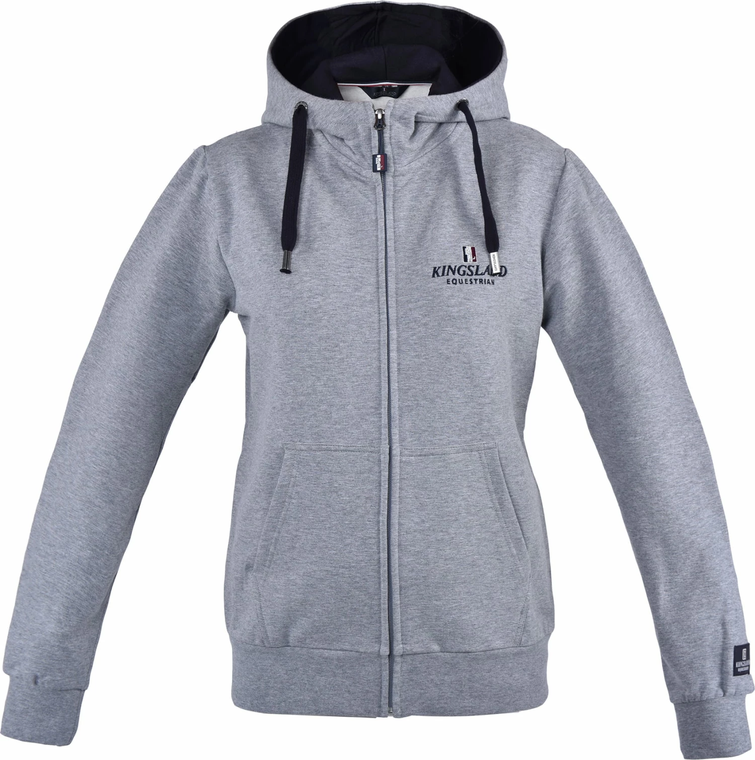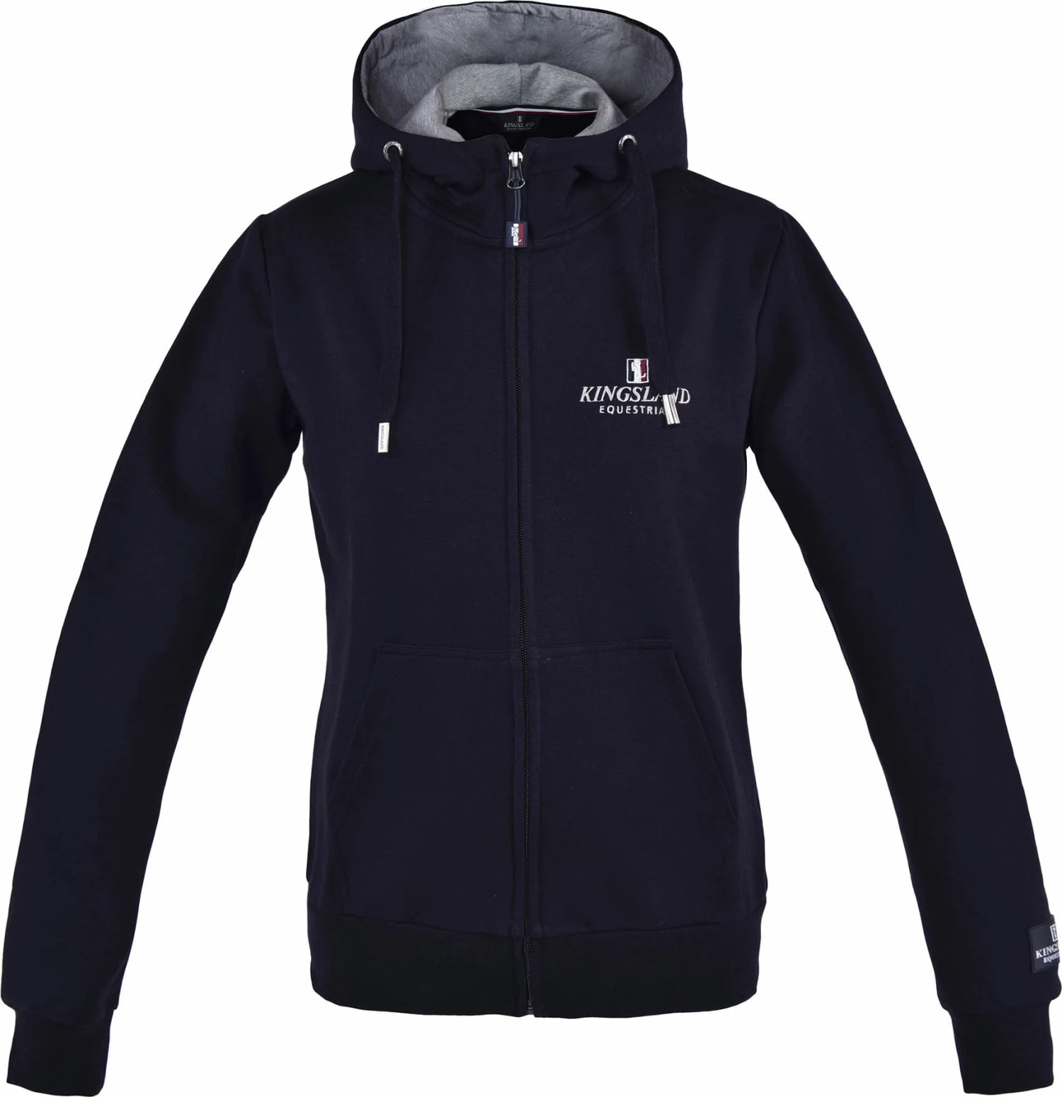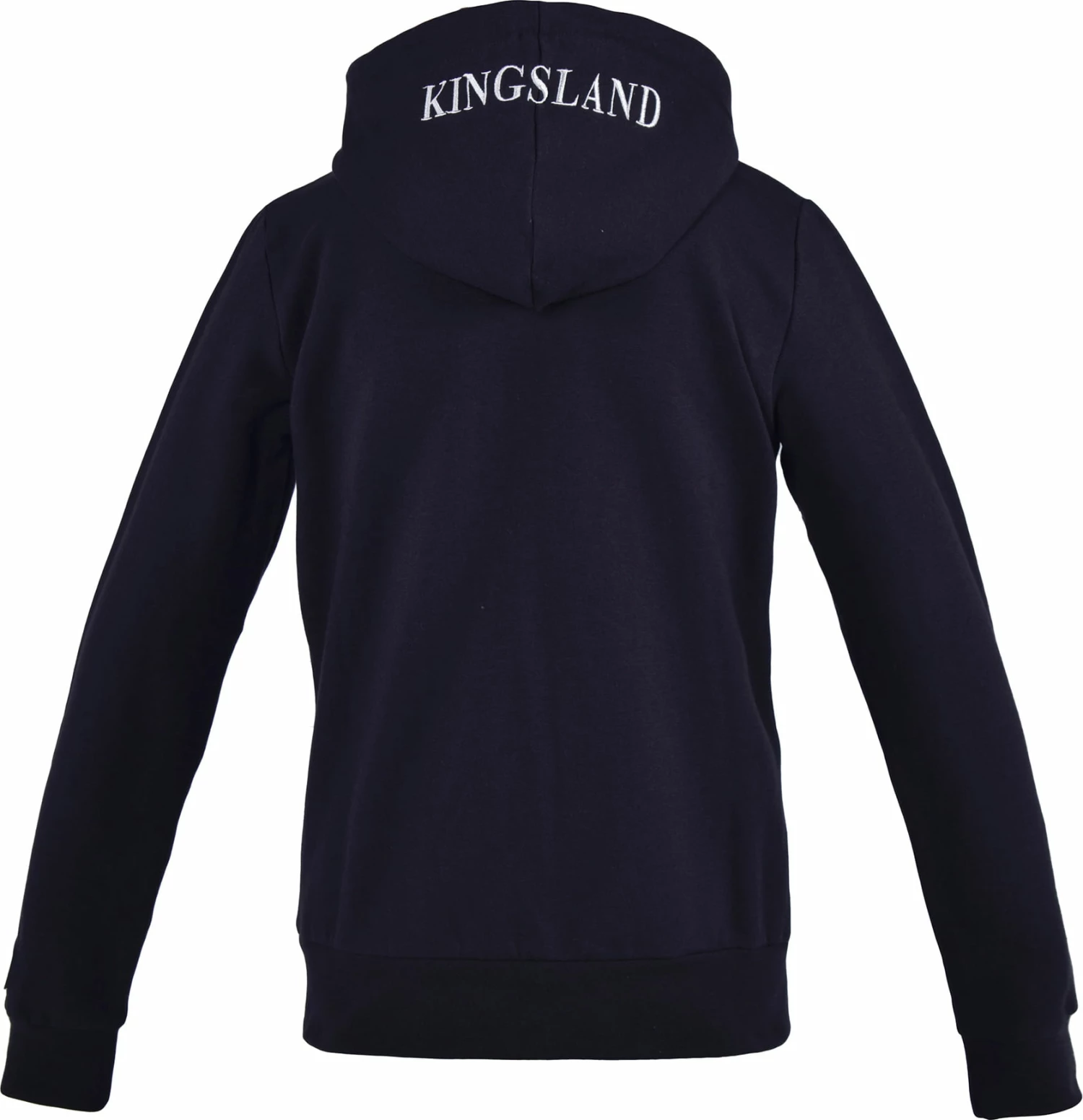 The unisex sweater jacket has a hood and two front pockets. The look is enhanced by discreet “Kingsland” embroidery and a silicone logo on the left sleeve.