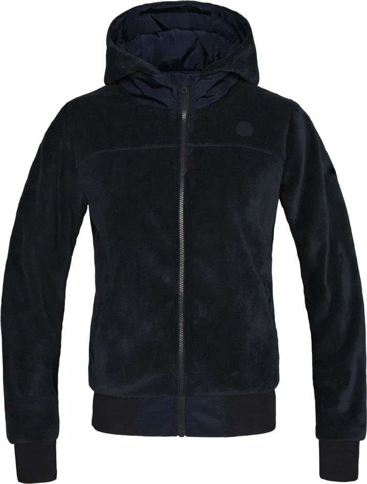- This unusual coral fleece jacket features div in the same colour as the material. The softness of the material is enhanced by the comfortable rib-knit cuffs and a rib-knit waistband. Woven fabric contrasts on the collar, pockets, waistband and hood, as well as a logo patch on the left side of the chest give the jacket a unique look.