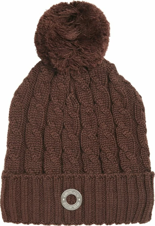 - This cable knit hat comes in beautiful autumn colours and is lined with warm fleece. A subtle metal logo adorns the front of the hat, and the cute bobble on top adds charm.