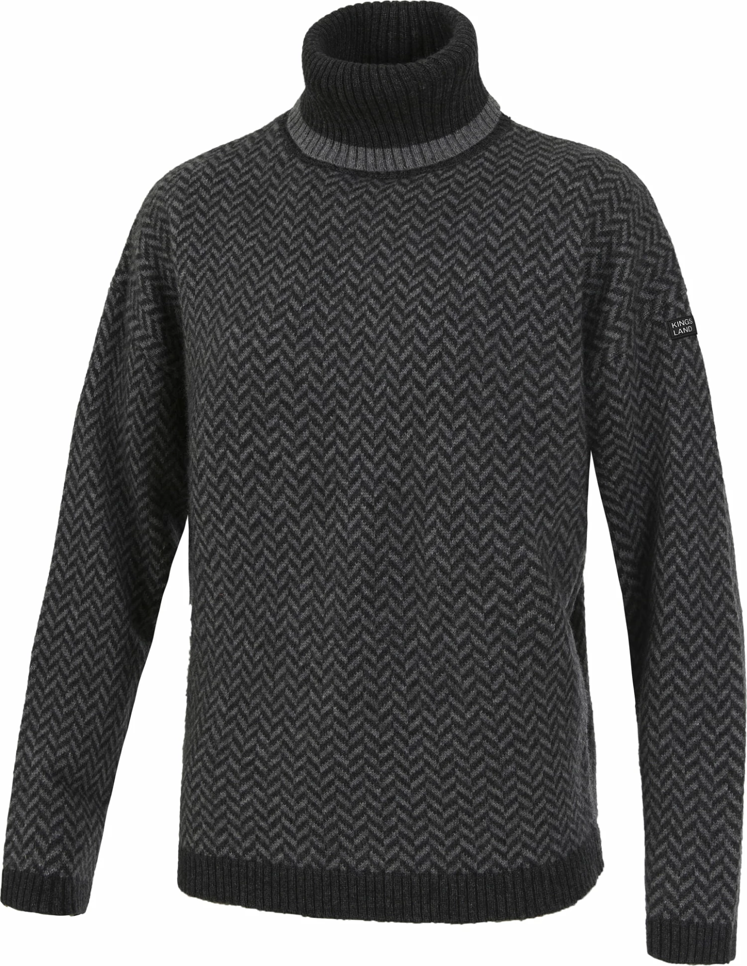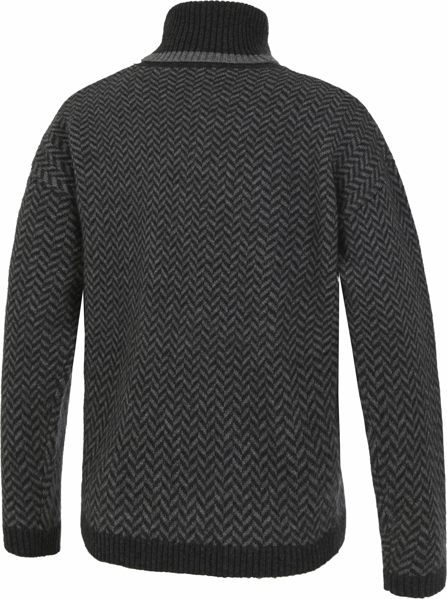 The high-quality jacquard knit is gorgeously warm and soft while the design features a stylish zigzag pattern. Detailing includes solid-colour trims on the sleeves, waistband and turtleneck, a simple logo on the left sleeve, and a contrasting ribbed edge at the neck.