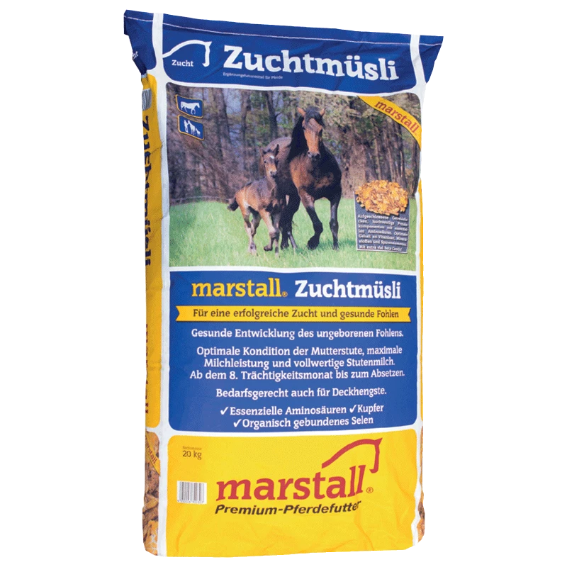 The breeding muesli is adapted to the needs of broodmares and stallions. It contains essential amino acids, omega-3 fatty acids, organic selenium and an extra helping of copper, beta-carotene and lysine.