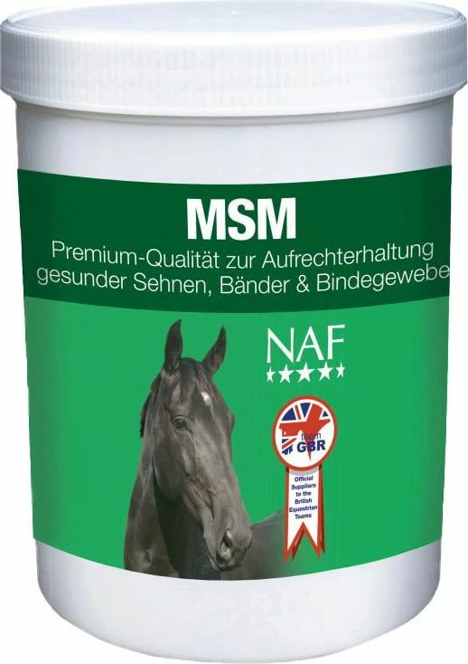 Methylsulfonylmethane, better known by its abbreviation MSM, is an organic sulphur compound. Rich in bioavailable sulphur, MSM can support a horse’s normal musculoskeletal system. NAF only uses premium quality methylsulfonylmethane for its product. This is sourced from UFAS accredited suppliers.