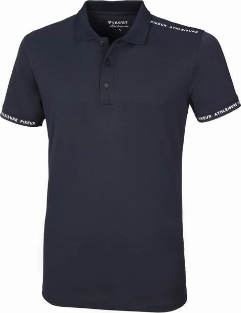 - This classic polo shirt in deep blue combines a go-to design with a high level of comfort.