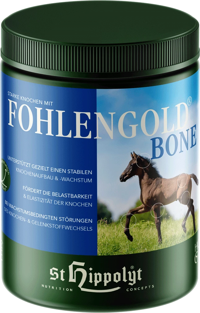 St. Hippolyt has developed a formula that specifically helps to support the stability, elasticity, and resilience of your horse’s bones. Fohlengold BoneCare contains valuable cell building blocks (nucleotides), combined with high-quality nutrients that meet the needs of a growing horse.