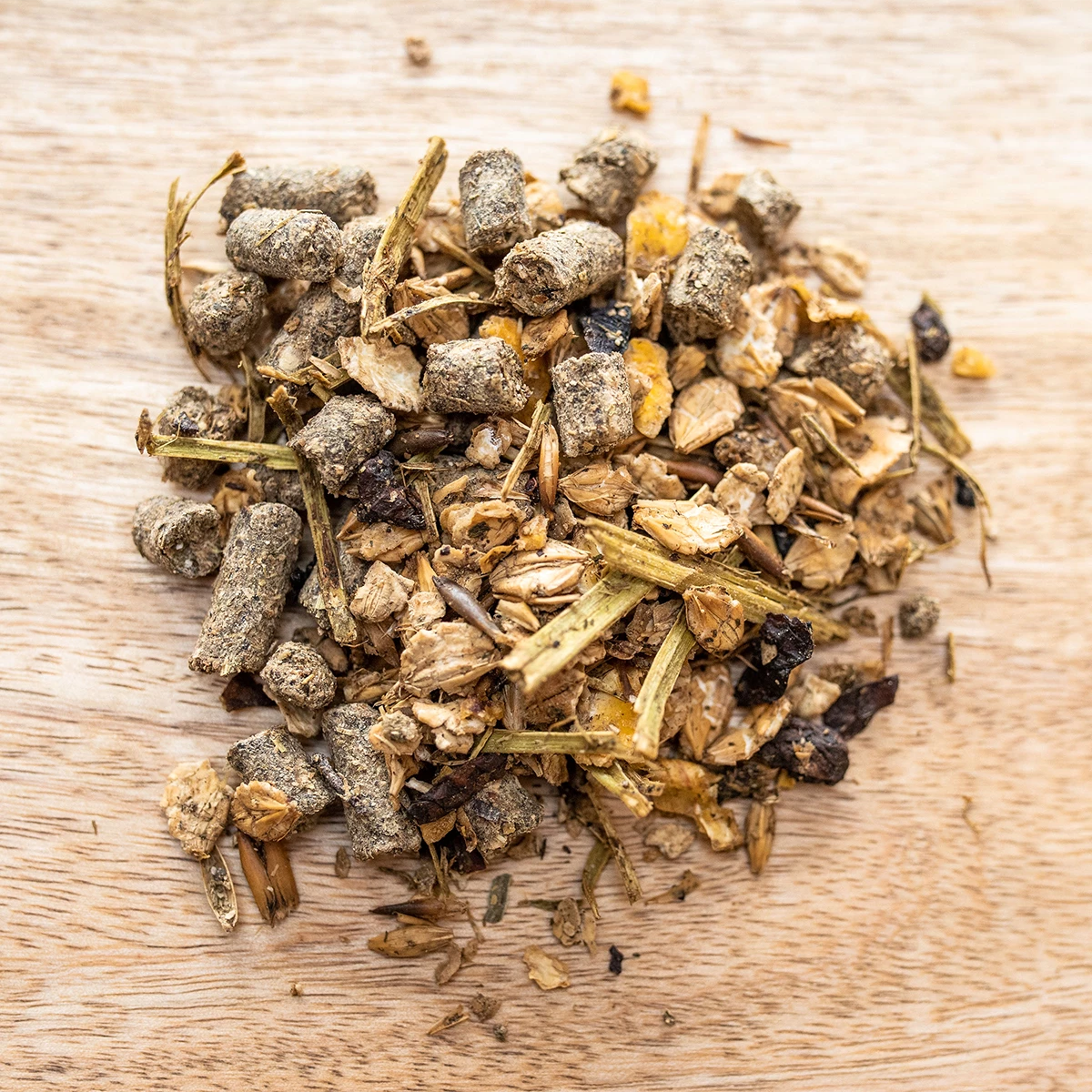 The Hesta Mix is rich in bioavailable, high-quality nutrients. The organically bound trace elements are easily absorbed in the intestines. Valuable oils from flaxseeds, corn germ, grape seeds and black cumin seeds provide polyunsaturated fatty acids such as linoleic, alpha and gamma-linolenic acid.