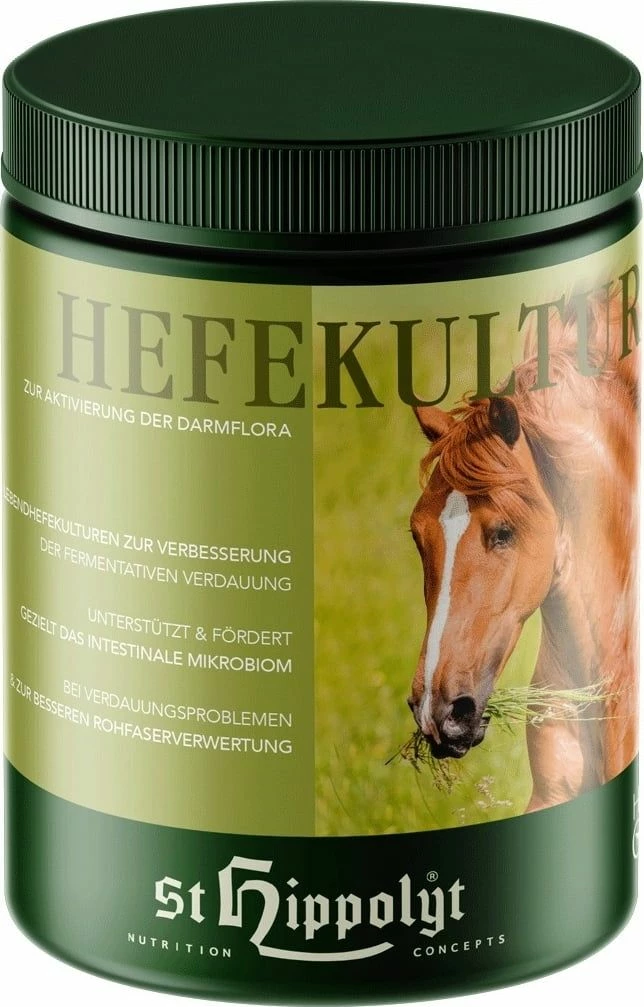 Yeast Culture from St. Hippolyt combines bioavailable micronutrients with live yeast cultures and provides natural B vitamins to support enzymatic digestion and the development of the large intestine flora when given regularly. A maintained large intestine flora can consequently support the immune system as well as the self-synthesis of B vitamins and thus contribute to the horse’s well-being and enjoyment of performance.