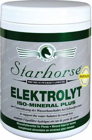 Minerals and trace elements, widely known as electrolytes, belong to the inorganic matter, as they are almost all metals that the horse’s organism cannot produce. This means that essential substances must be taken in with food, but are excreted by the body through sweating. These electrolytes must be replaced in their entire spectrum as quickly as possible, provided there is no decrease in performance or cramps. The best way to do this is by taking special electrolyte preparations which are made exclusively from horses’ sweat analysis. STARHORSE® Iso Mineral Plus meets this high requirement 100%.