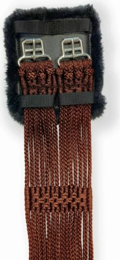 Classic cord saddle girth with padded stainless steel buckles. The soft fleece pads at both ends of the girth prevent the coat from getting caught and the lateral belly region from chafing unpleasantly. The soft and breathable synthetic fibre material is particularly suitable for horses with a restless saddle position.